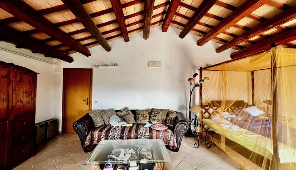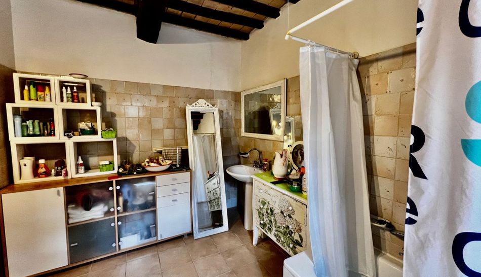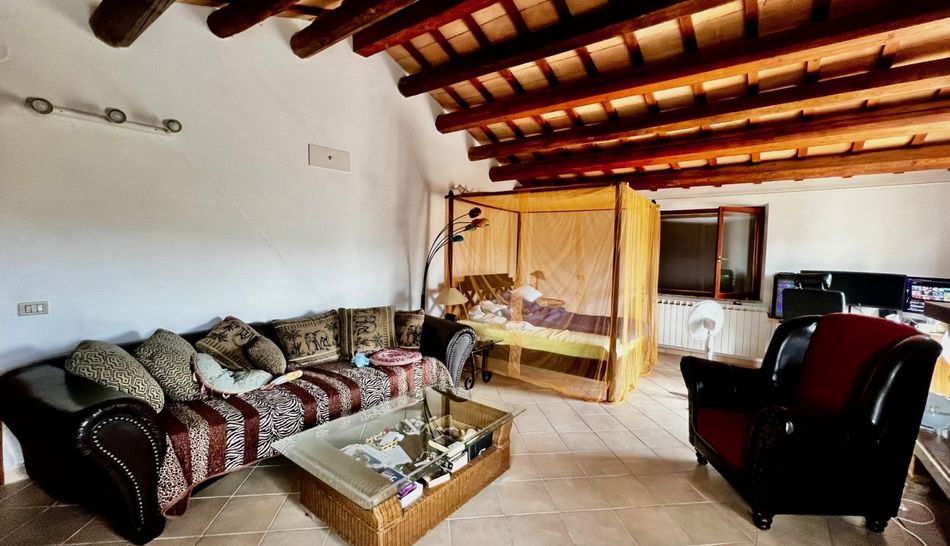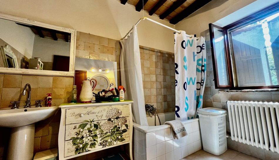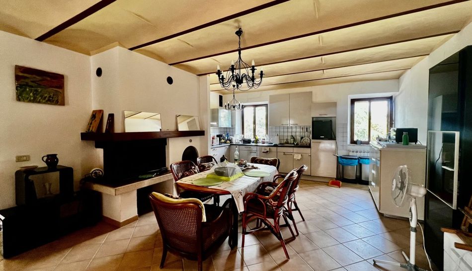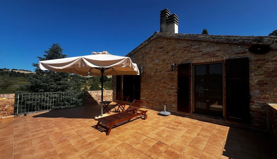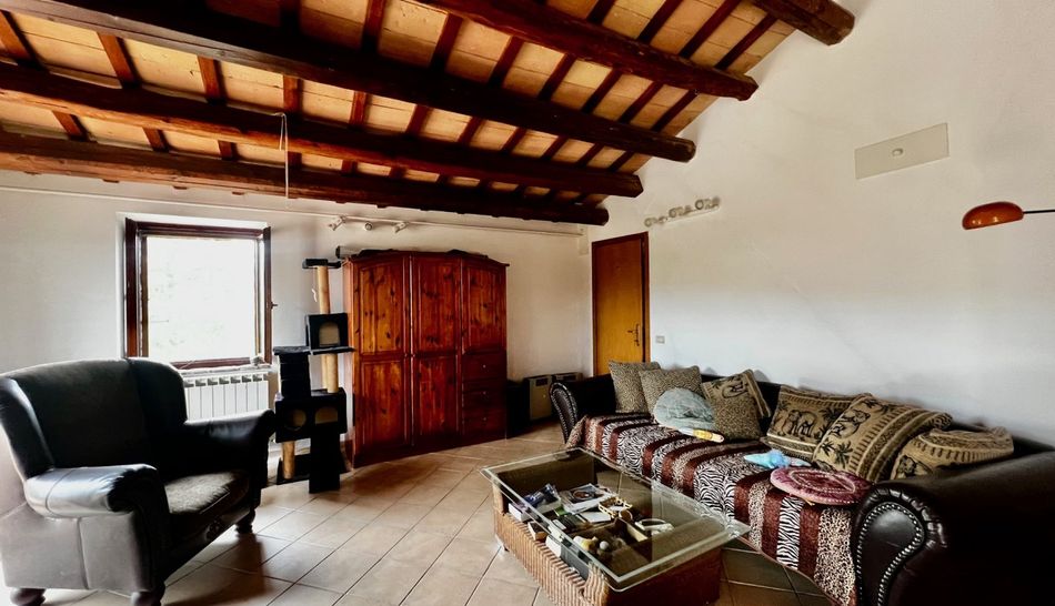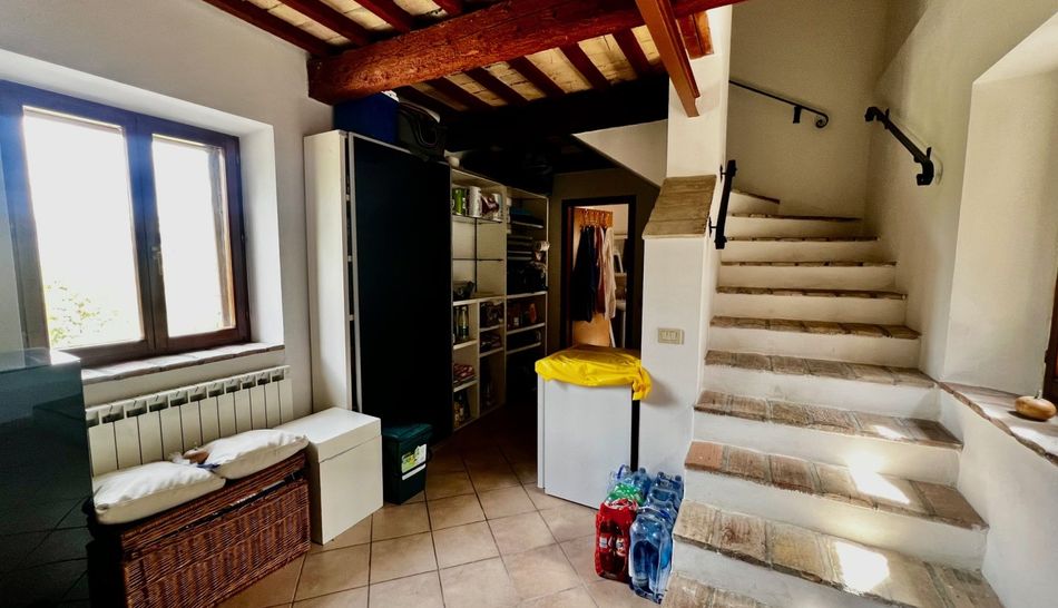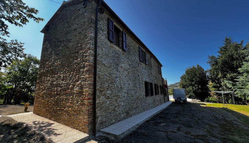 Fratte Rosa is situated on a hill in one of the most beautiful panoramic settings in the province, between the Cesano and Metauro valleys. It is famous for its terracotta artwork, its museum, its churches, and the many events it hosts during the summer. Not far from the center of this ancient village, this renovated country house is for sale. The building is surrounded by approximately 2,764 square meters of fully fenced land with a 6 x 4 swimming pool. On the ground floor: a large kitchen/diner, living room, hallway, staircase, and bathroom. On the first floor: a hallway, toilet, a small bedroom, a large bedroom that could easily be converted into two bedrooms, and a beautiful roof terrace. There is also a shed. Gas heating, a well, and municipal water are available.