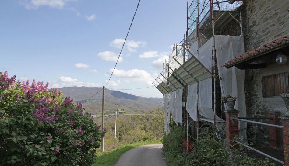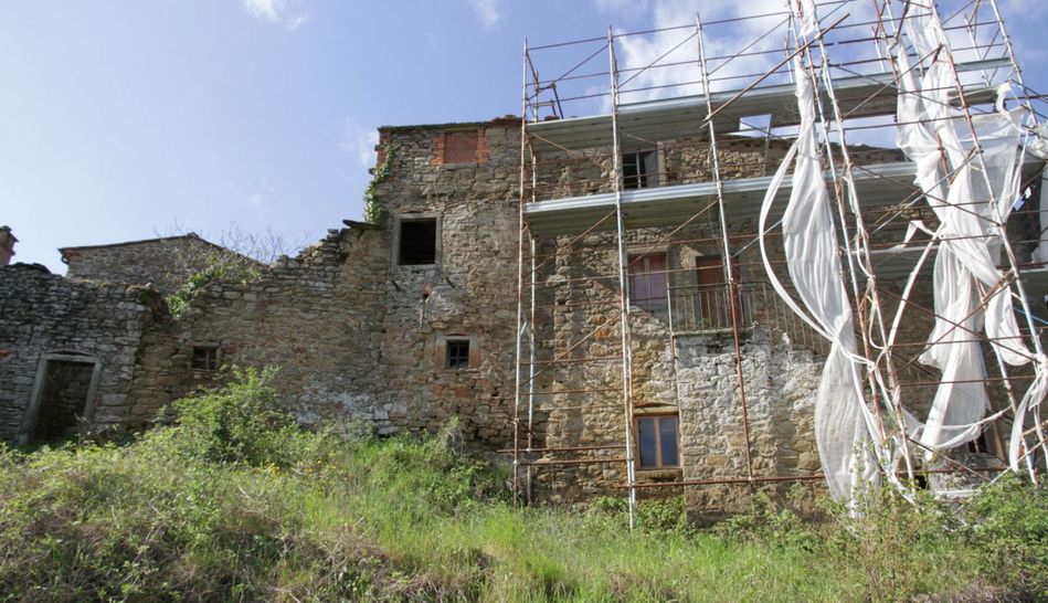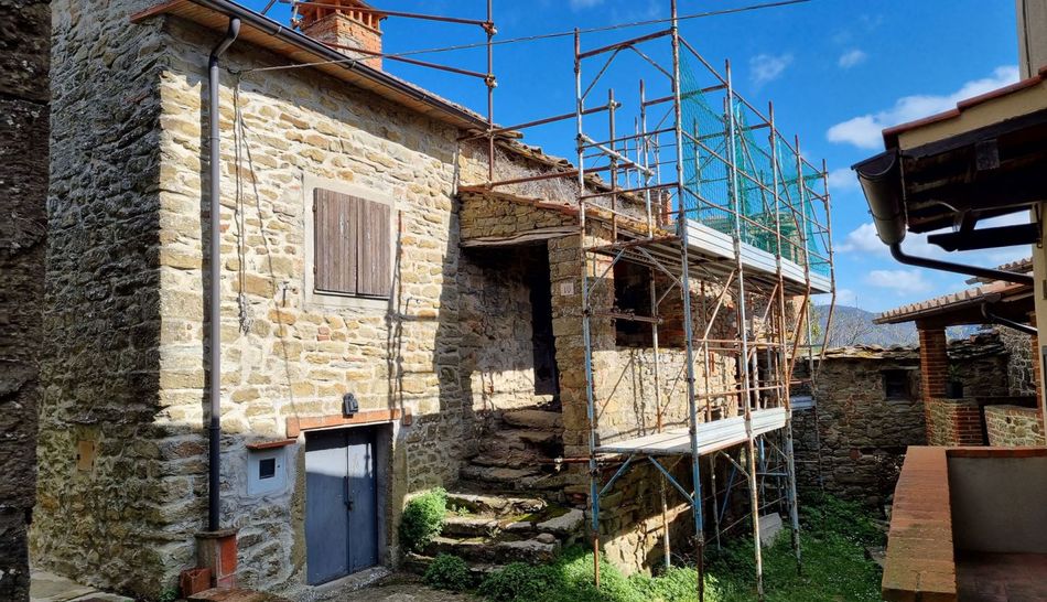 Property in unfinished state forming part of a typical Tuscan stone hamlet in the process of restoration.