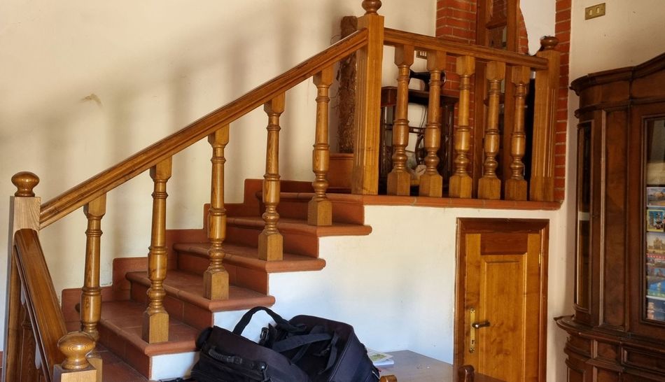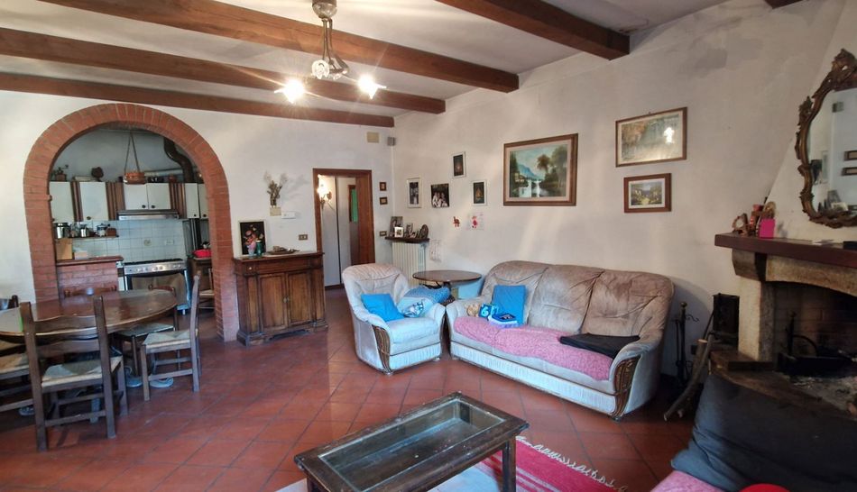 The ground floor is used as a cellar and central heating plant and the first floor, accessible by means of a staircase independent from the cellars themselves, is used as a dwelling and is composed of a kitchen, a living room, two bathrooms and four bedrooms.