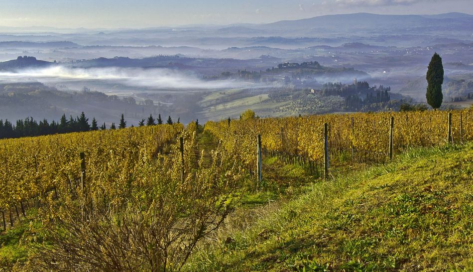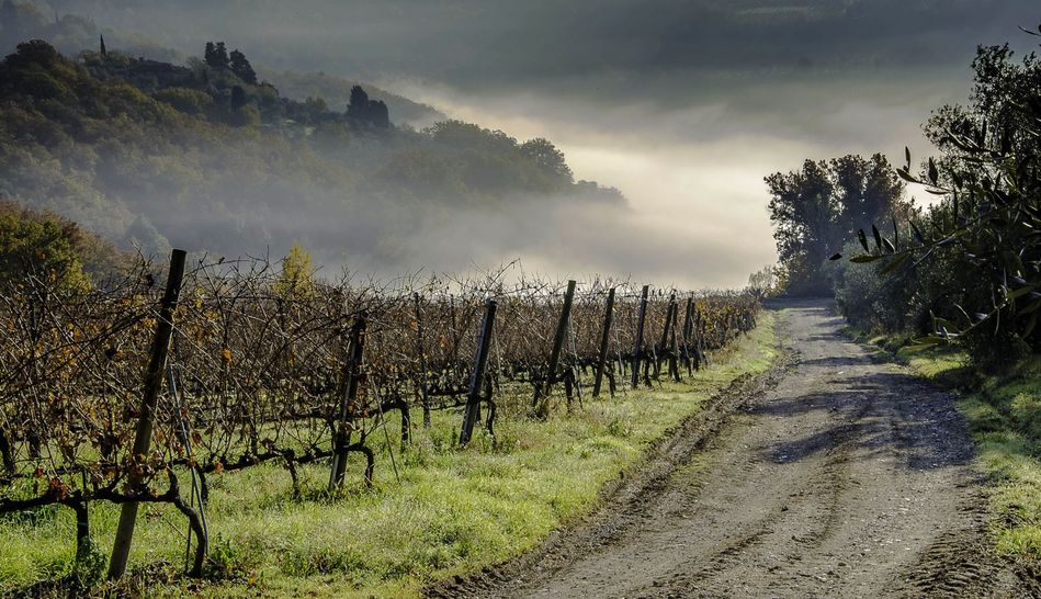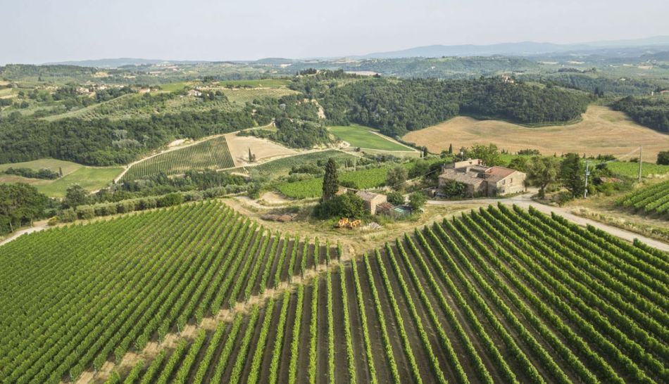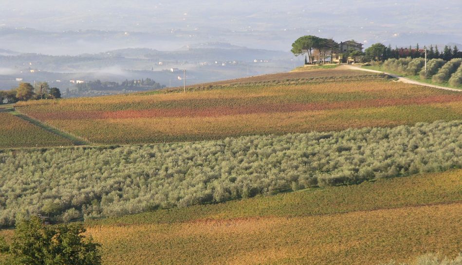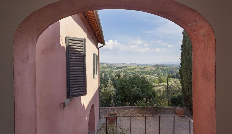 A farm with approximately 41 hectares of land located on the top of a hill, halfway between Florence and Siena.