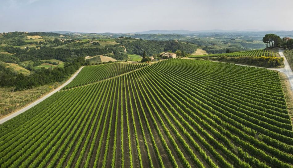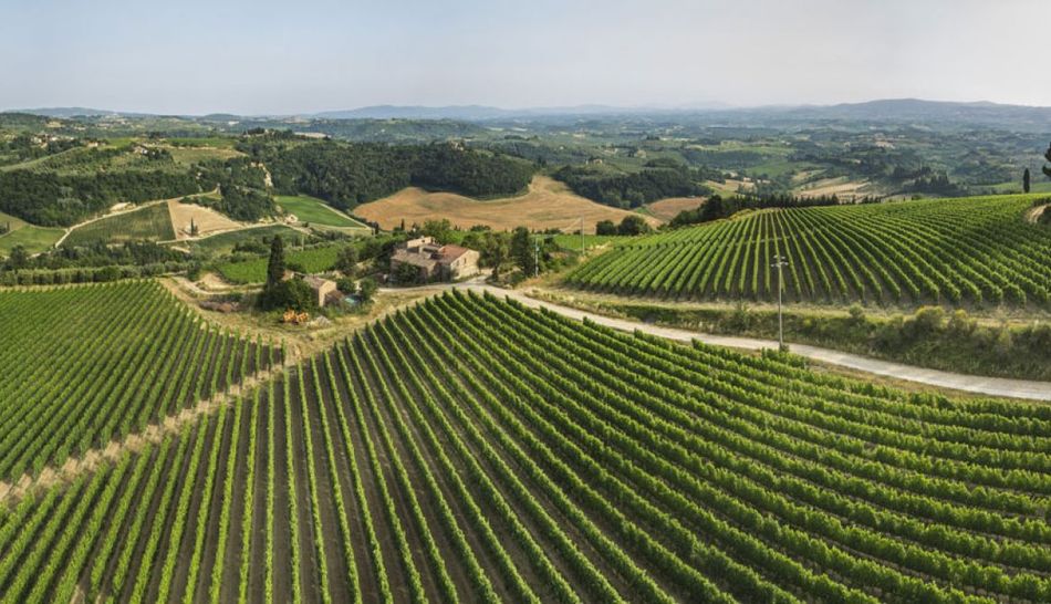 This wine and olive farm is located 330 m above sea level, between the Val di Pesa and the Val d'Elsa, in the heart of Tuscany, in a panoramic hillside position with perfect exposure to the sun.