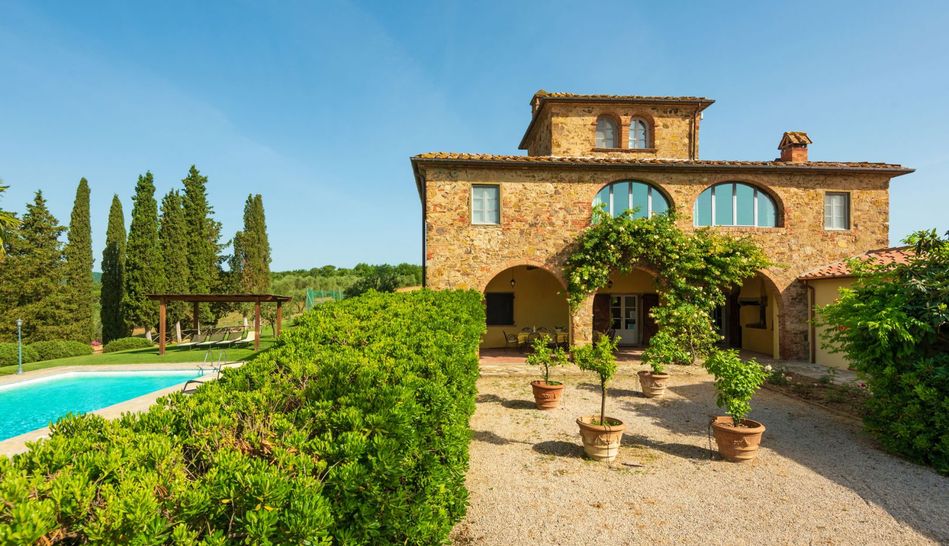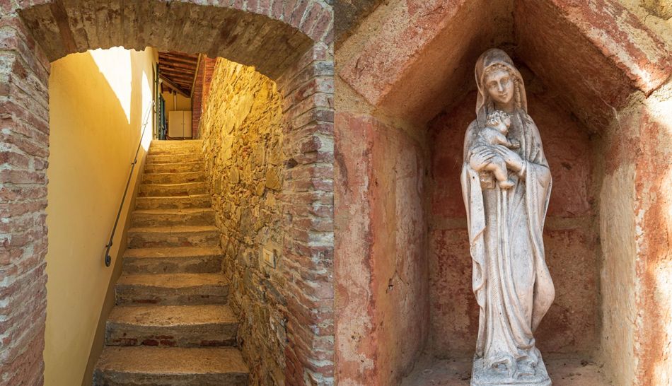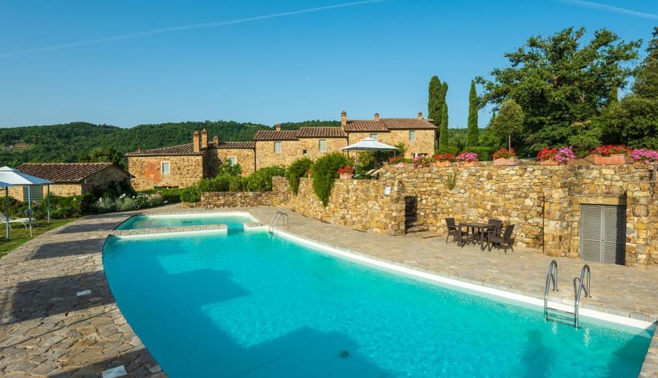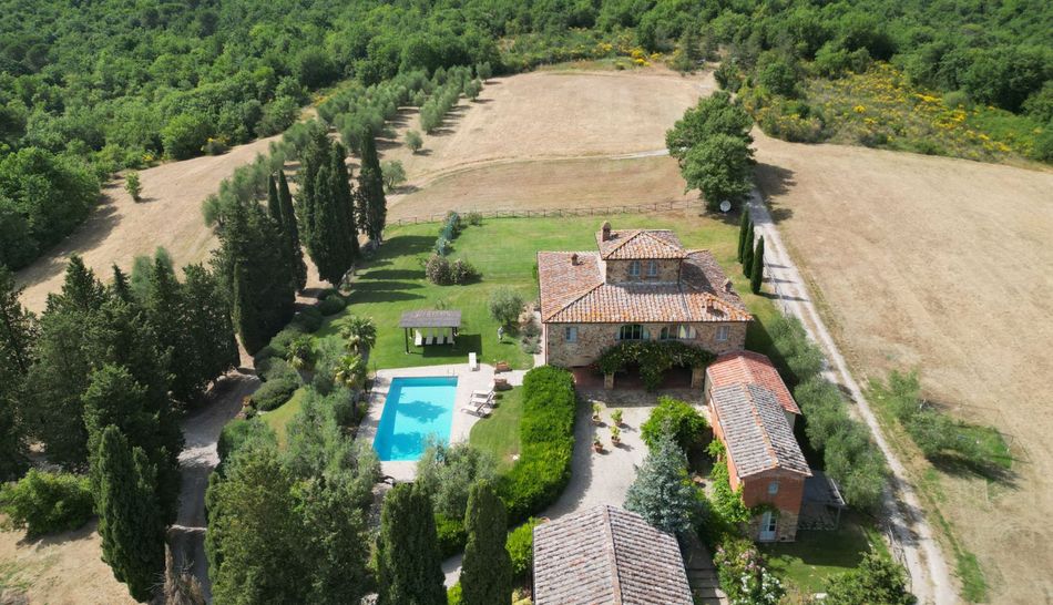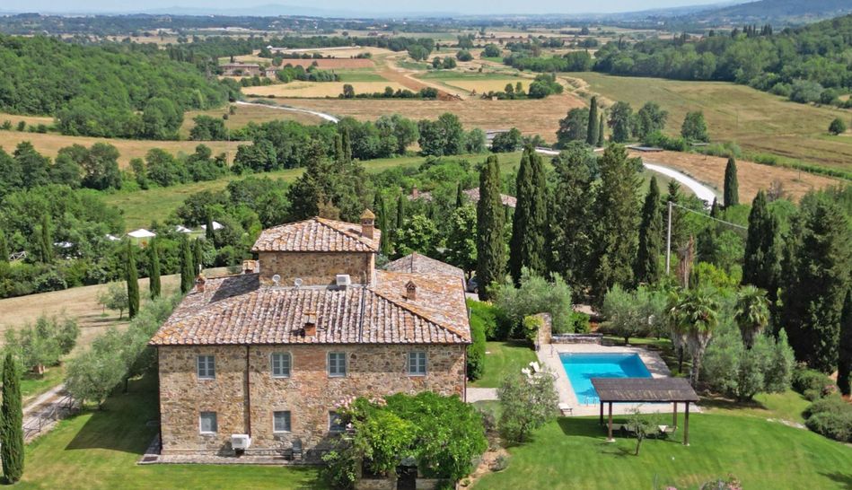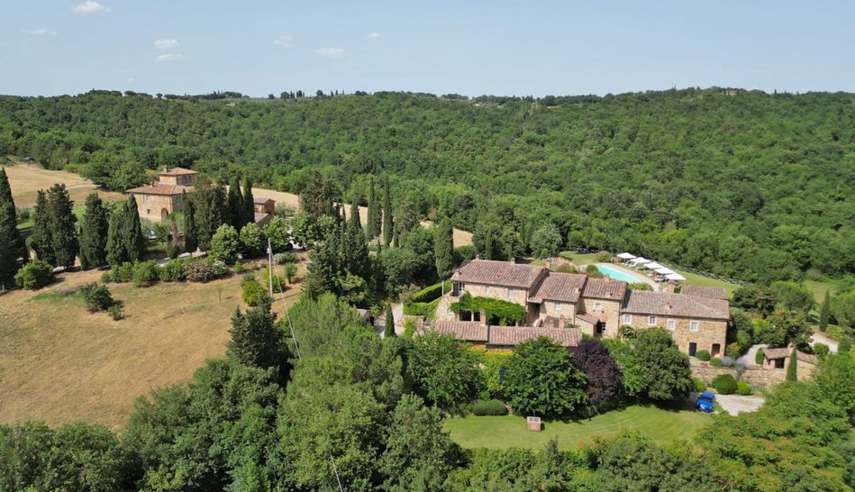 An area framed by the sinuous Tuscan hills, designed by endless rows of vineyards and olive groves. It is within this idyllic setting that the complex for sale is located, consisting of an enchanting hamlet and a splendid Leopoldine villa that today appear in the most classic Tuscan style, with the elegant exposed stone covering the entire structure.