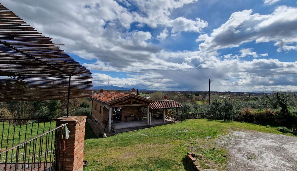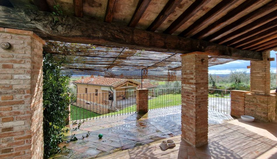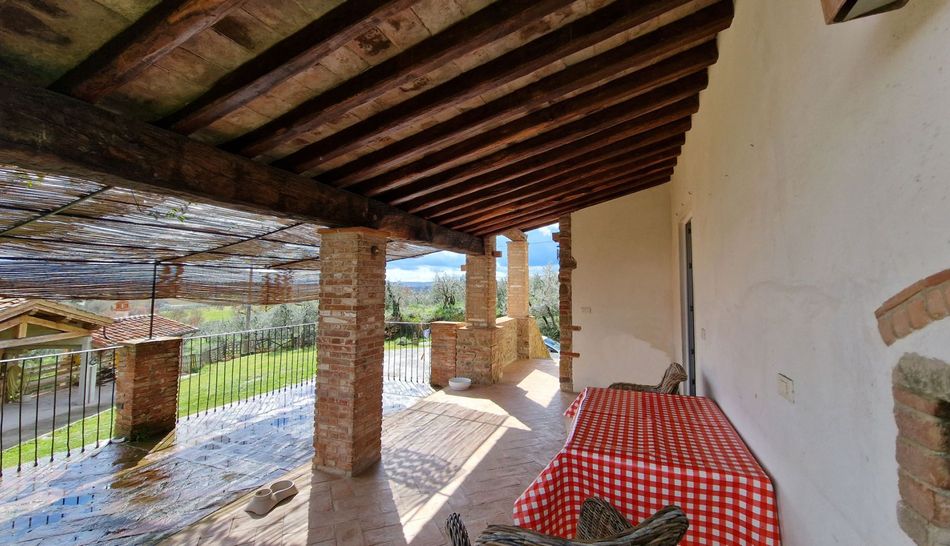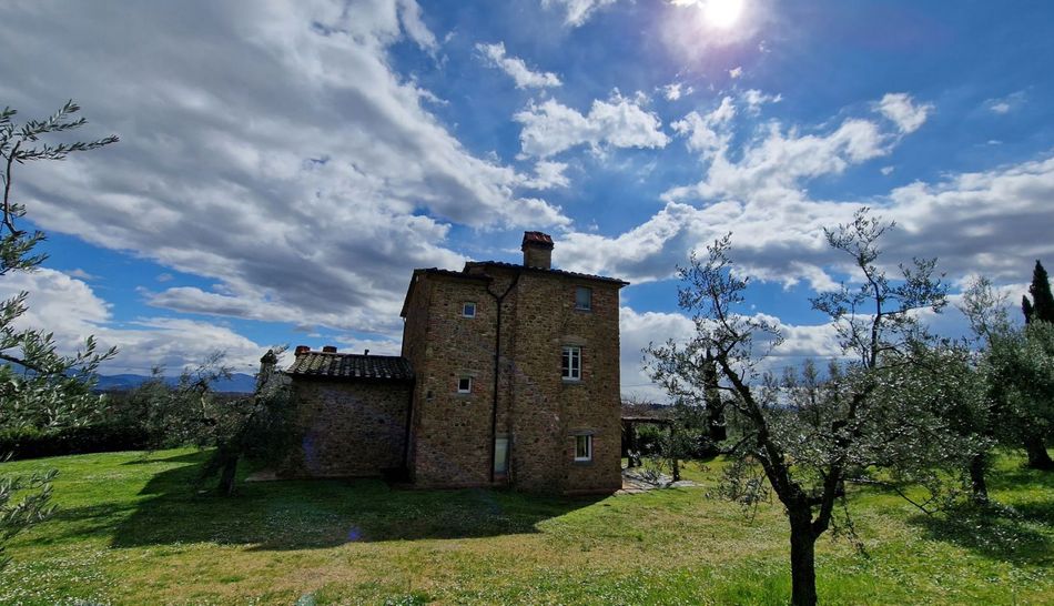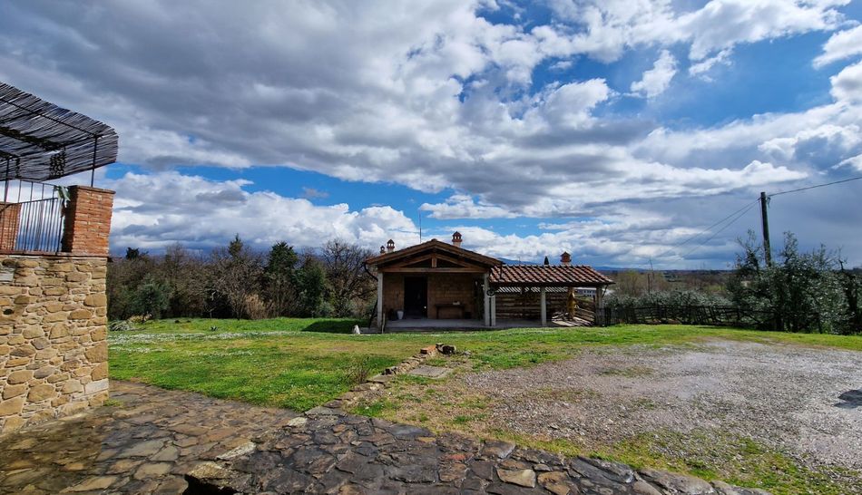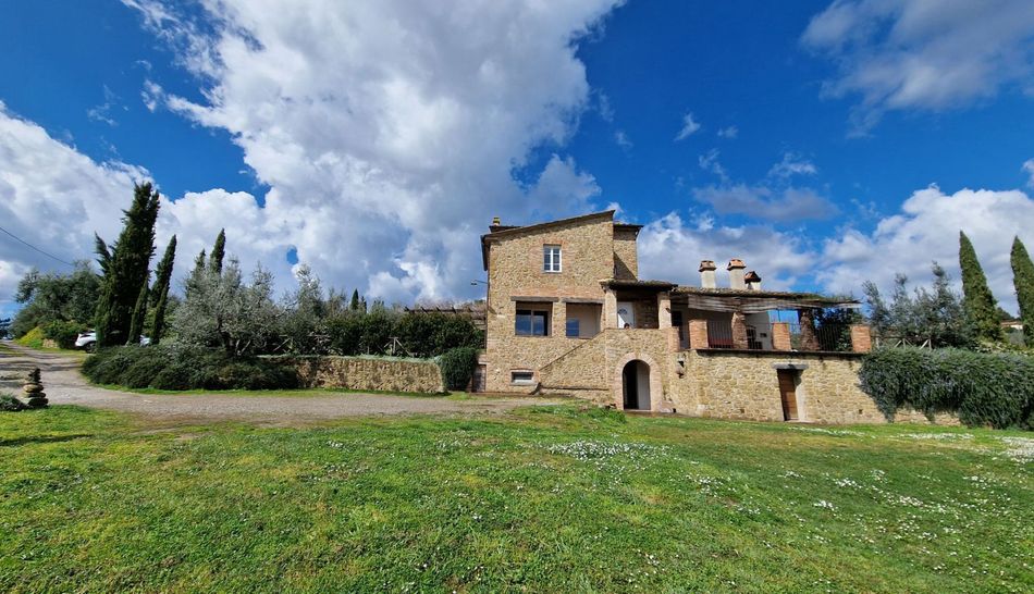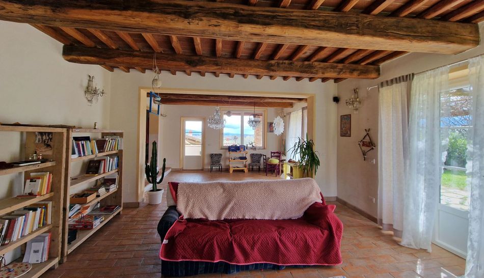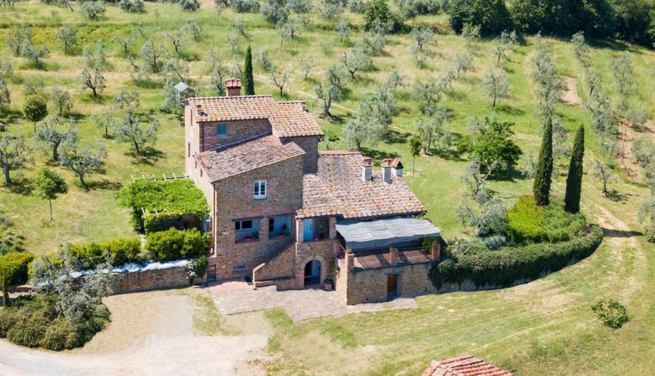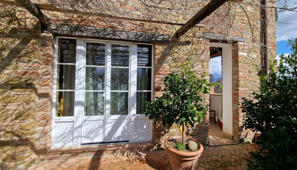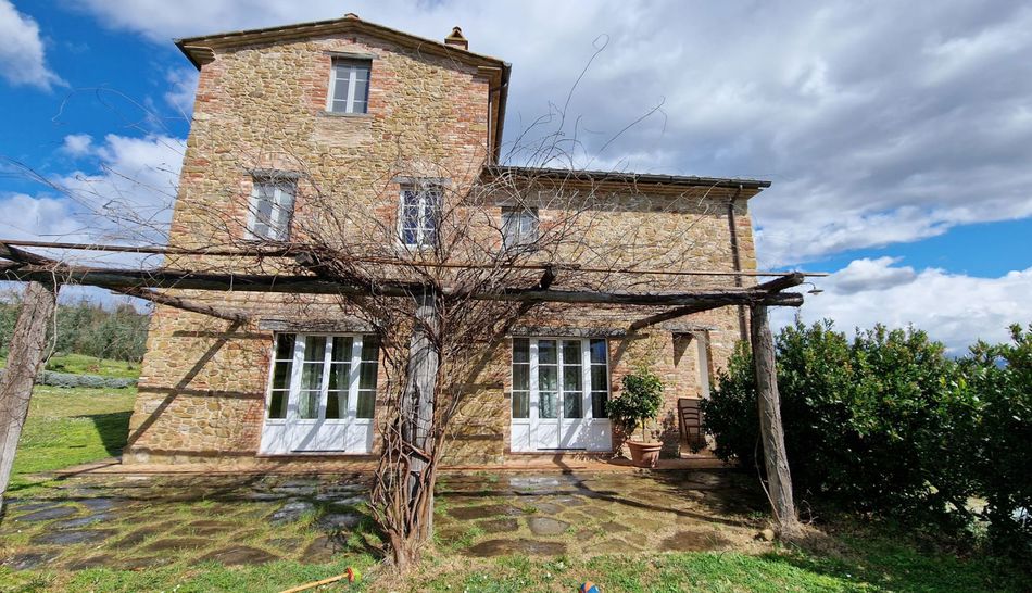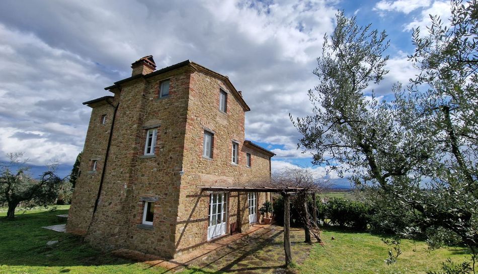 This luxury farmhouse with views over the wonderful panorama of the valley, perfectly restored with traditional Tuscan materials, is for sale in a dominant position on the green hills of Civitella in Val di Chiana.