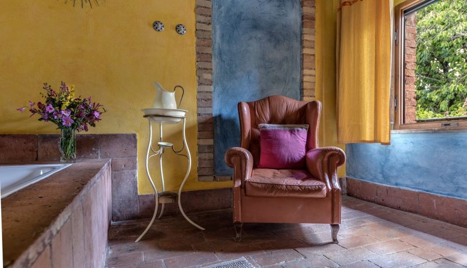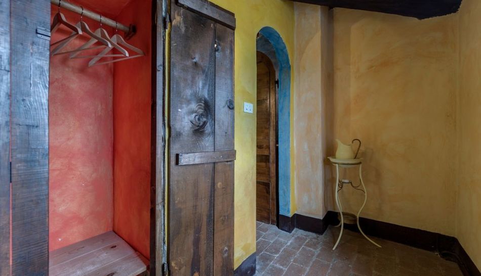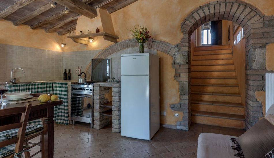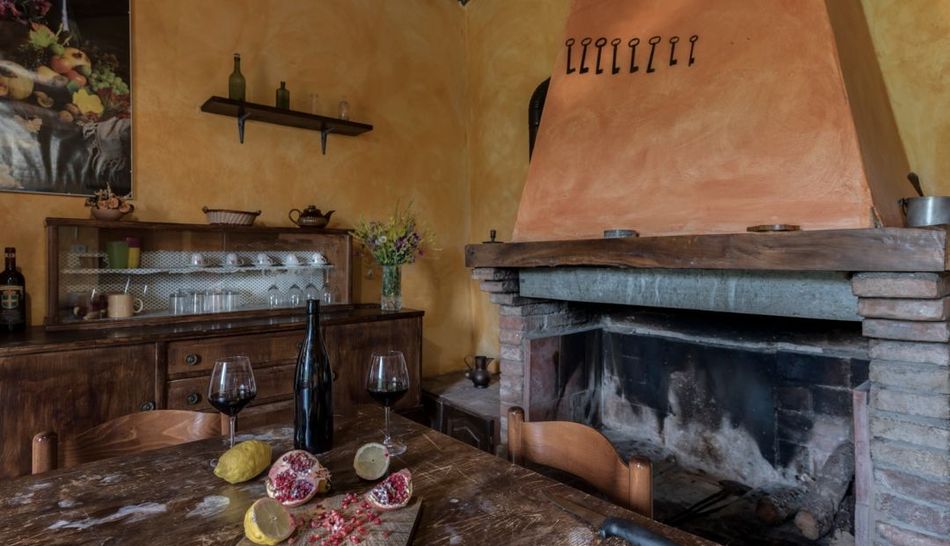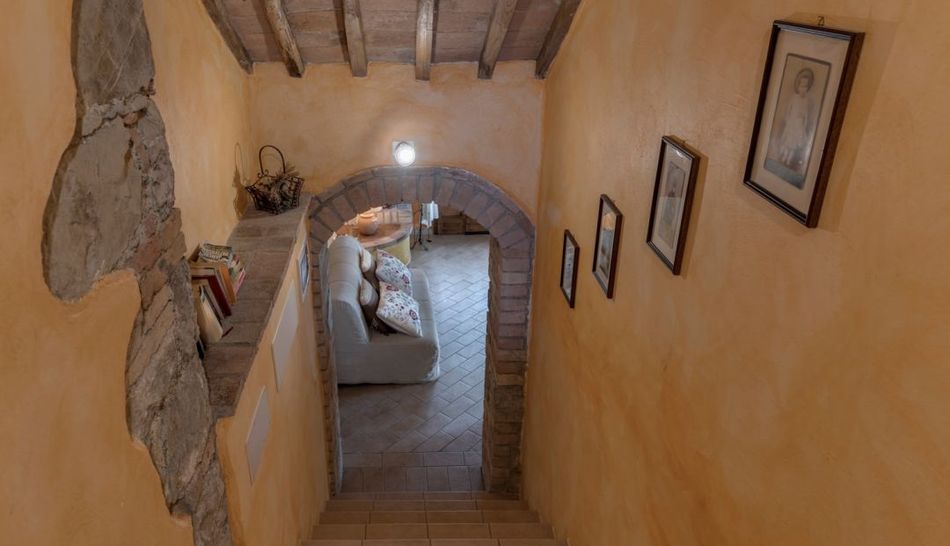 The interiors, given the hospitality management, are perfectly finished for guests, maintaining an authentic style given by the conservative restoration through wooden beams, terracotta floors and playing on the colors in the plaster walls alternating color with stone.