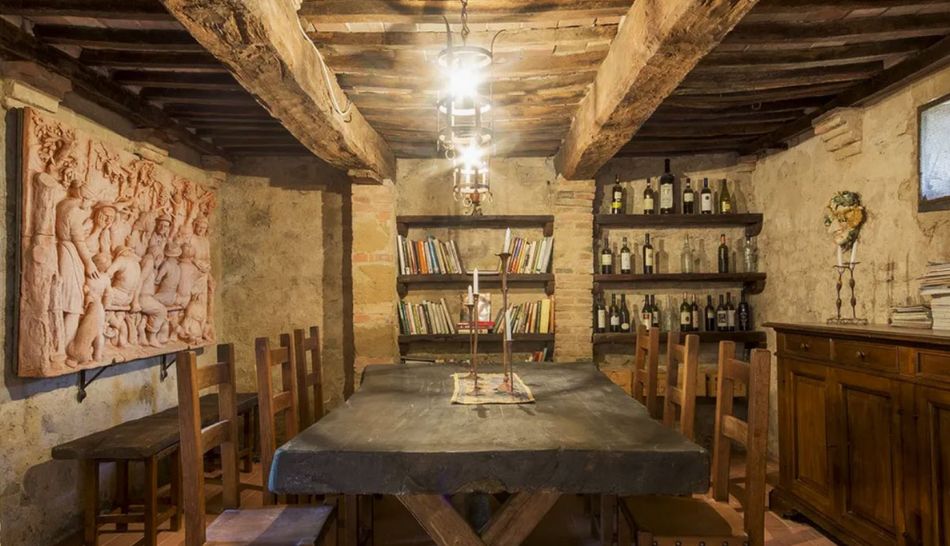The ground floor consists of a large living room, a kitchen with direct access to the courtyard, where there is a large bread/pizza oven, a small bathroom, a large pantry and the ancient cellar, partially underground, whose origins are presumed to date back to 1300.