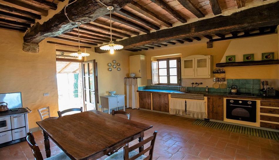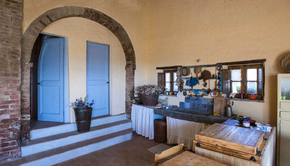 The farmhouse, surrounded by the beautiful Tuscan hills, can be reached from the unpaved road that connects it to the main road.