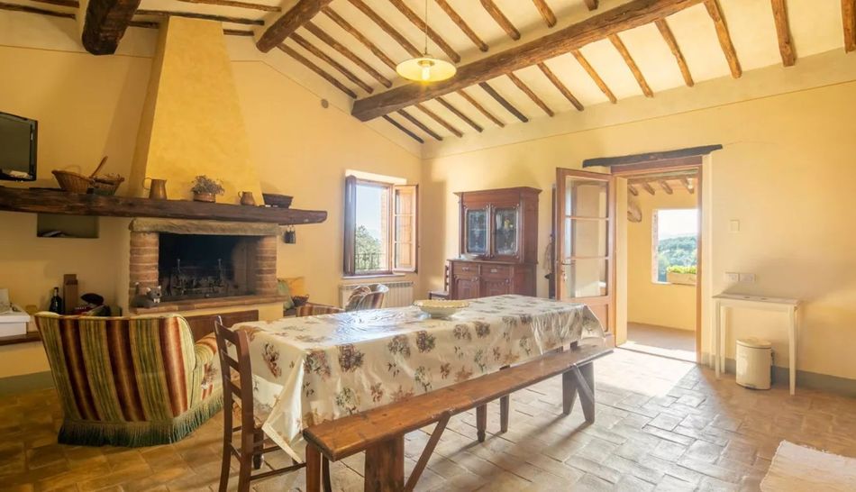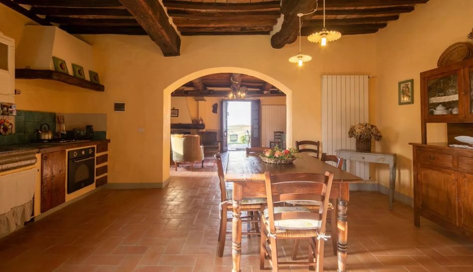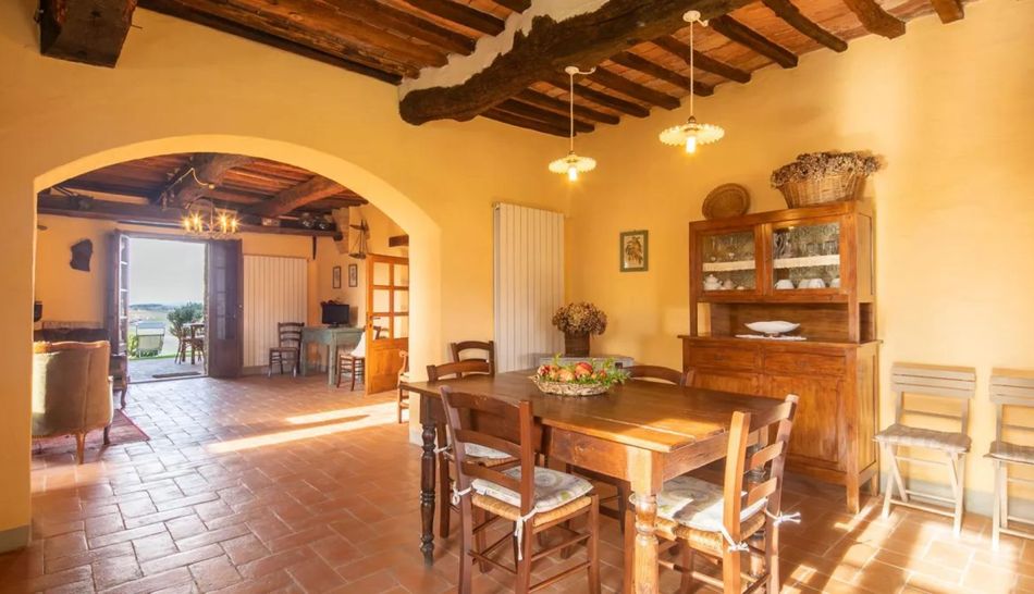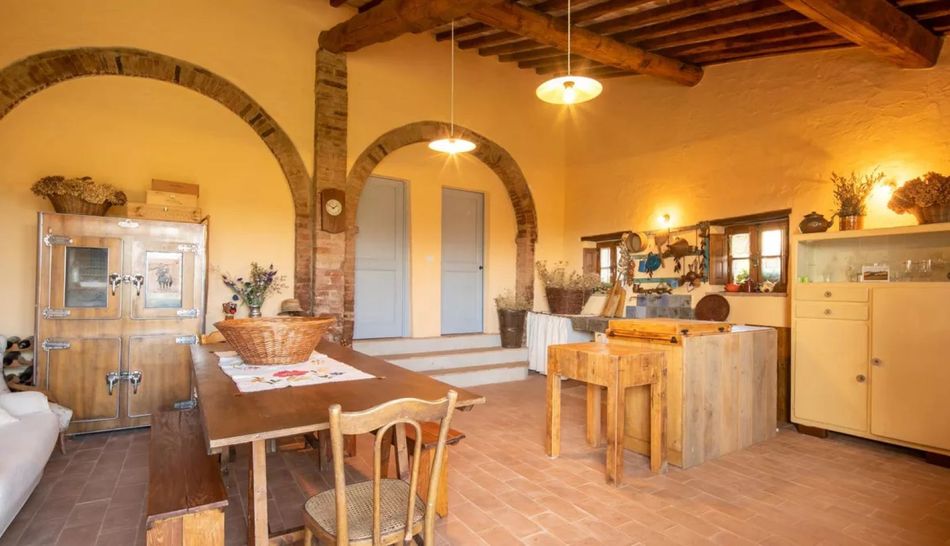 The farmhouse has been skilfully restored maintaining all the characteristics of typical Tuscan farmhouses. It is currently made of stone and exposed brick and is spread over two floors above ground, with a total surface area of approximately 391 sqm.