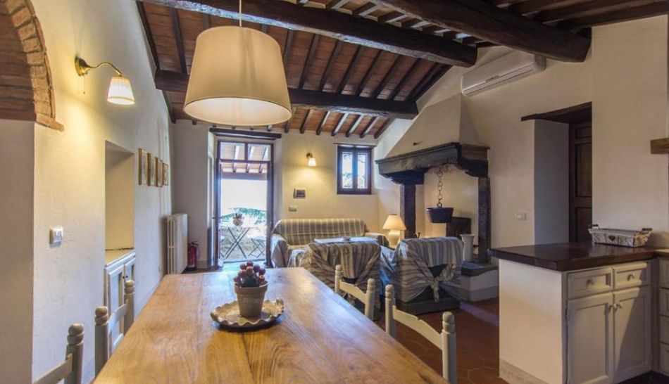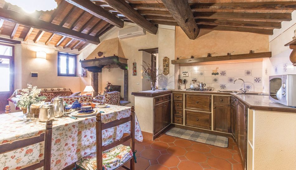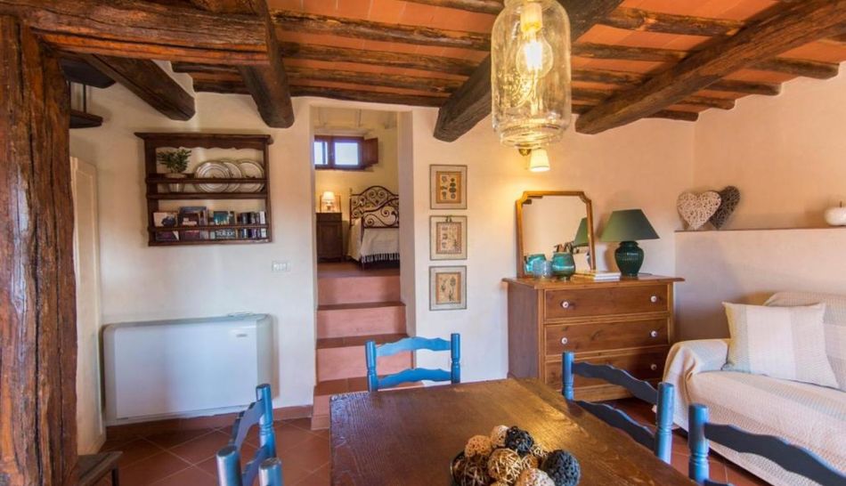 The interiors are furnished in typical Tuscan taste and are characterised by terracotta floors, wooden beams and exposed stone.