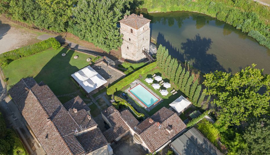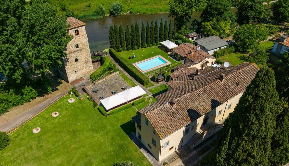 The medieval tower is certainly the distinguishing feature of this luxurious property and offers a marvellous view overlooking the Arno river and the surrounding hills.