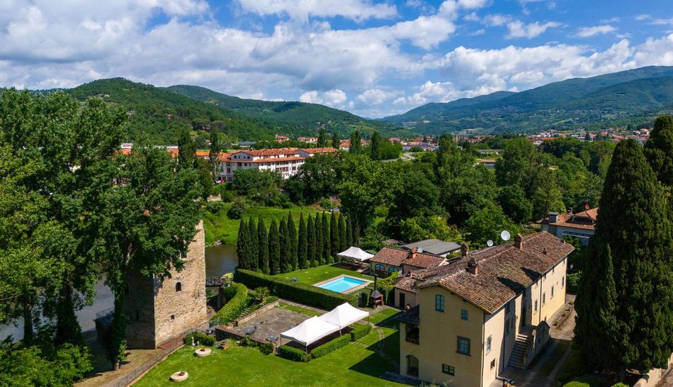 The property for sale consists of a 17th-century villa, a wellness centre, a swimming pool and a medieval tower. The complex is set in a context of rare beauty and is surrounded by a splendid park with century-old trees of about 6500 square metres.