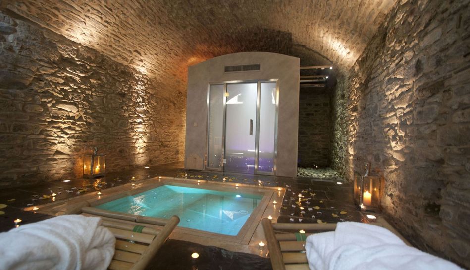 The spa, created from an ancient grotto, contains a whirlpool bath with chromotherapy, Turkish bath and emotional shower.