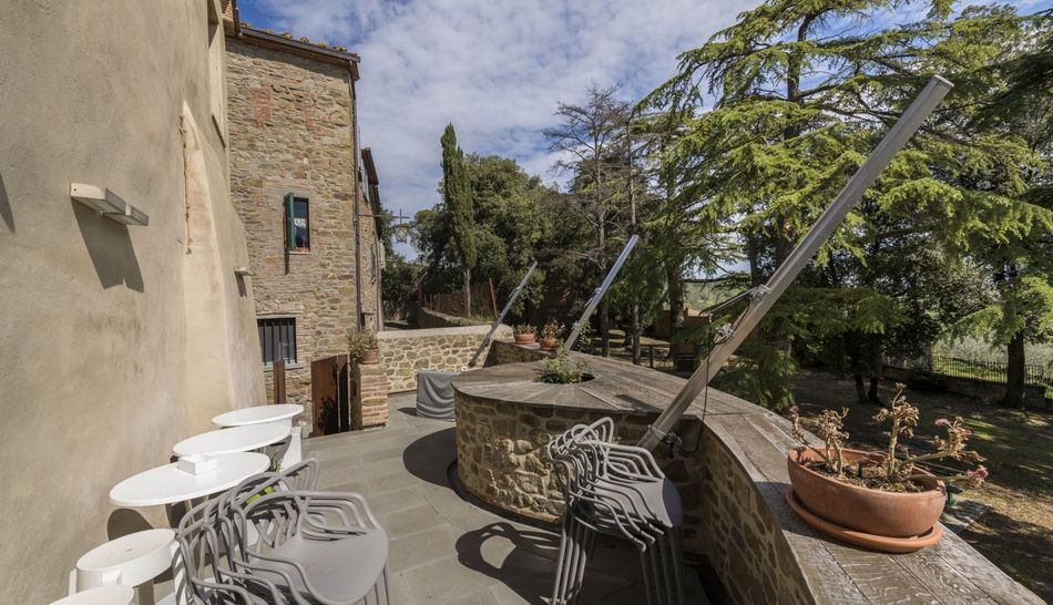 The date of foundation of the fortified village can be collocated around the 1385, when the florentine republic dominated Arezzo and countryside.The hamlet preserve today again the medieval aspect with severe quarterdeck and sectiones of the walls still clearly visible which remember the little stronghold which dominated the Valdichiana. An unique oasis and ancient landscape on the green of olive trees; ideal for relaxing.