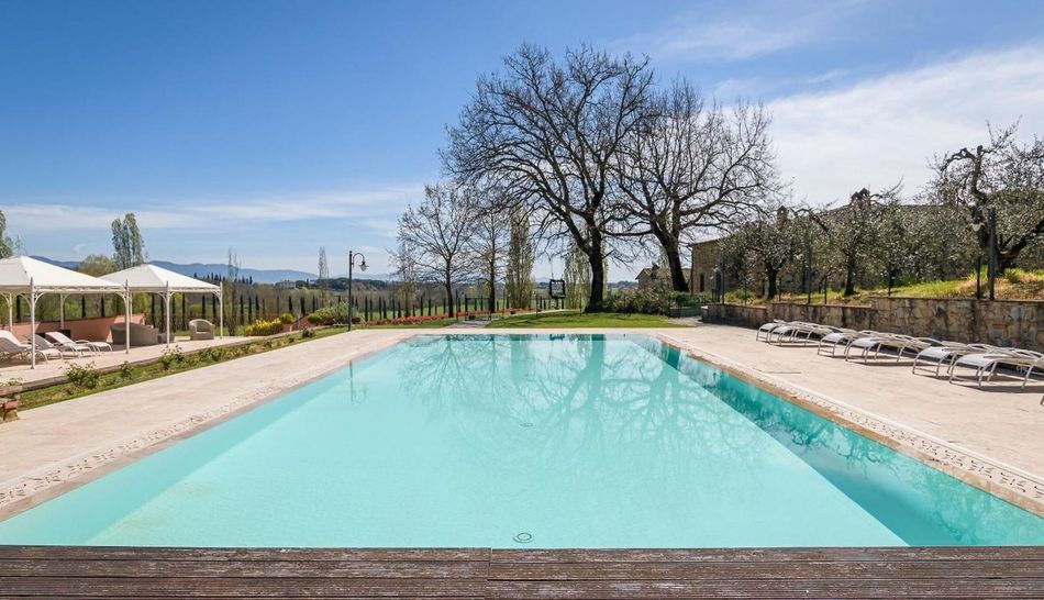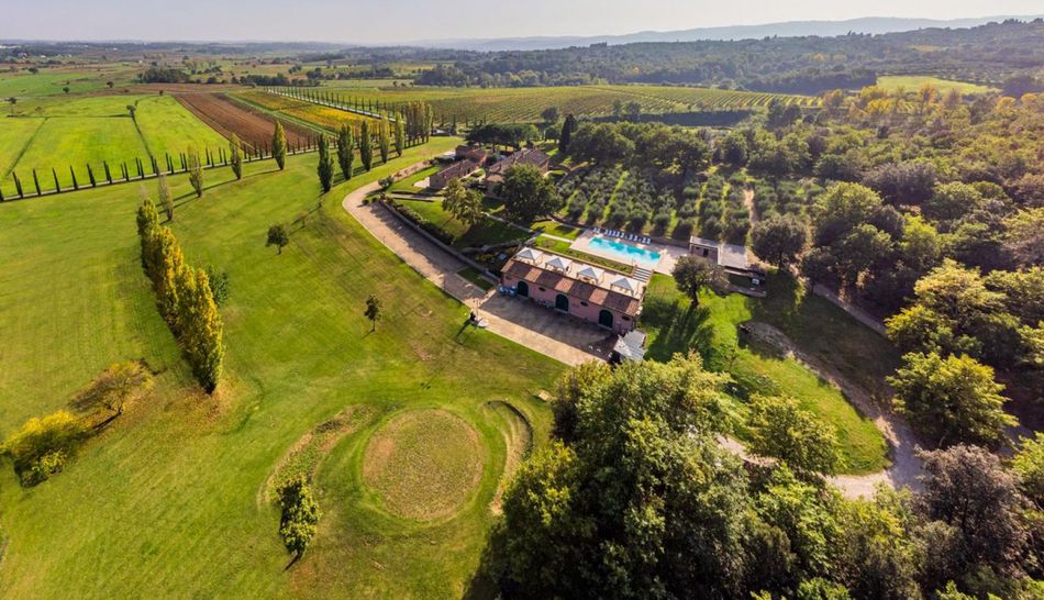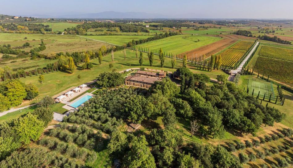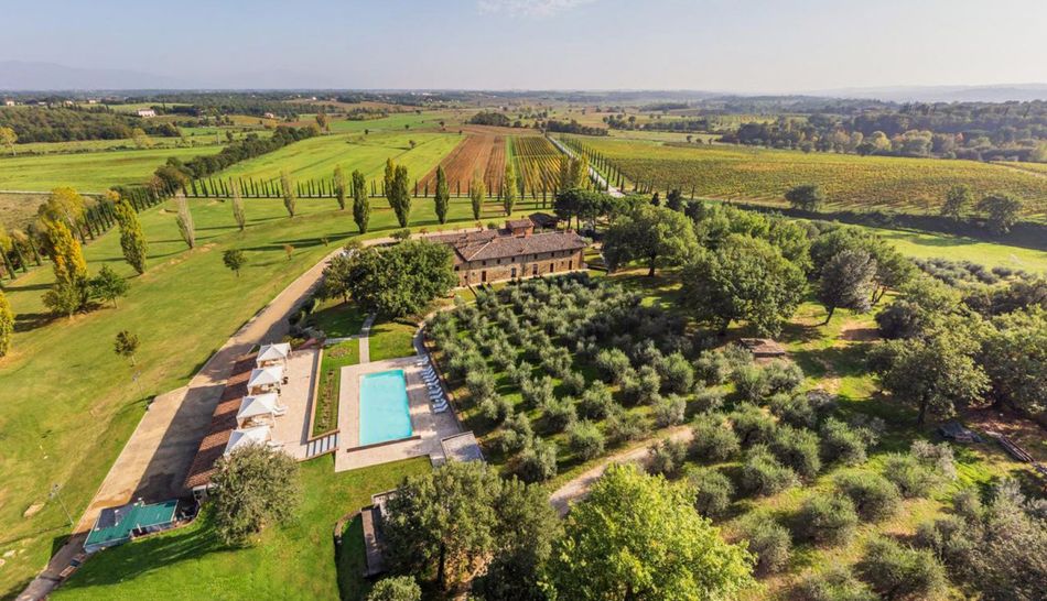 The 40 -hectare estate originally formed a farm producing wines and olive oil. Today, not only the main buildings of the farm have been meticulously restored, but the original function of the farm has also been brought back to life, with the production of high quality DOCG wines and olive oil.