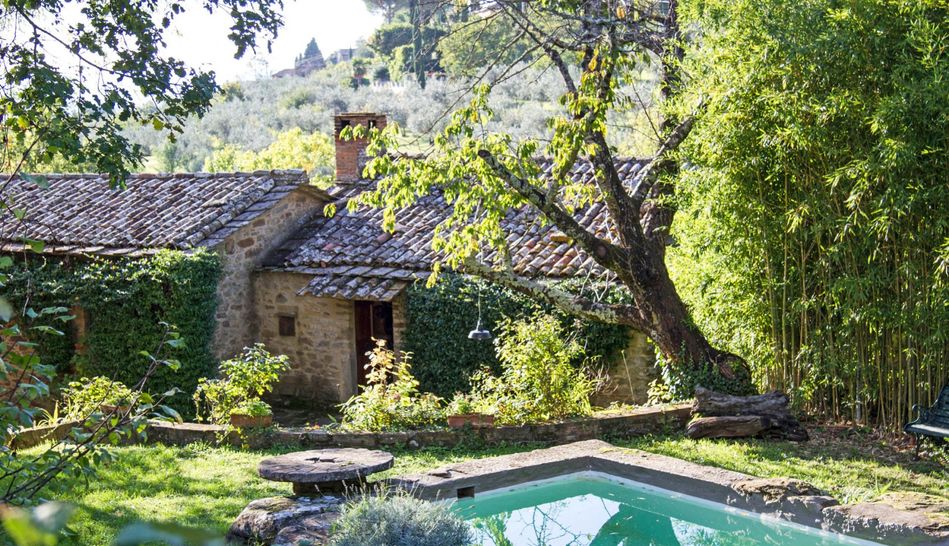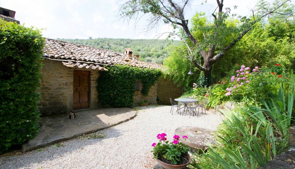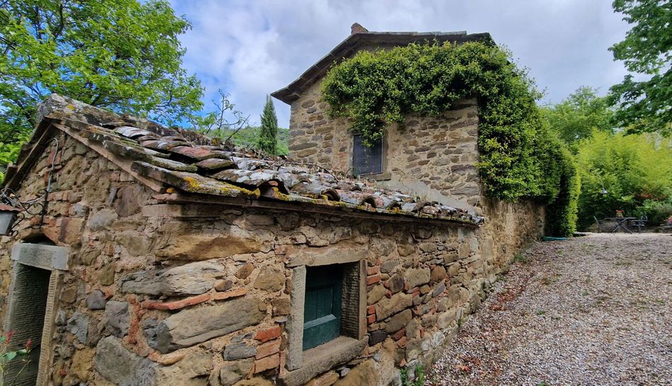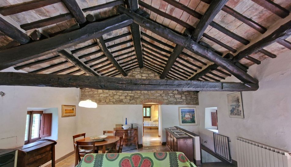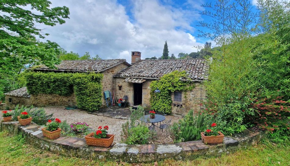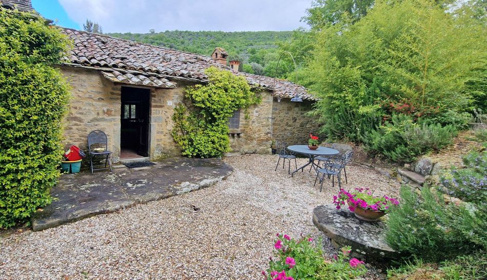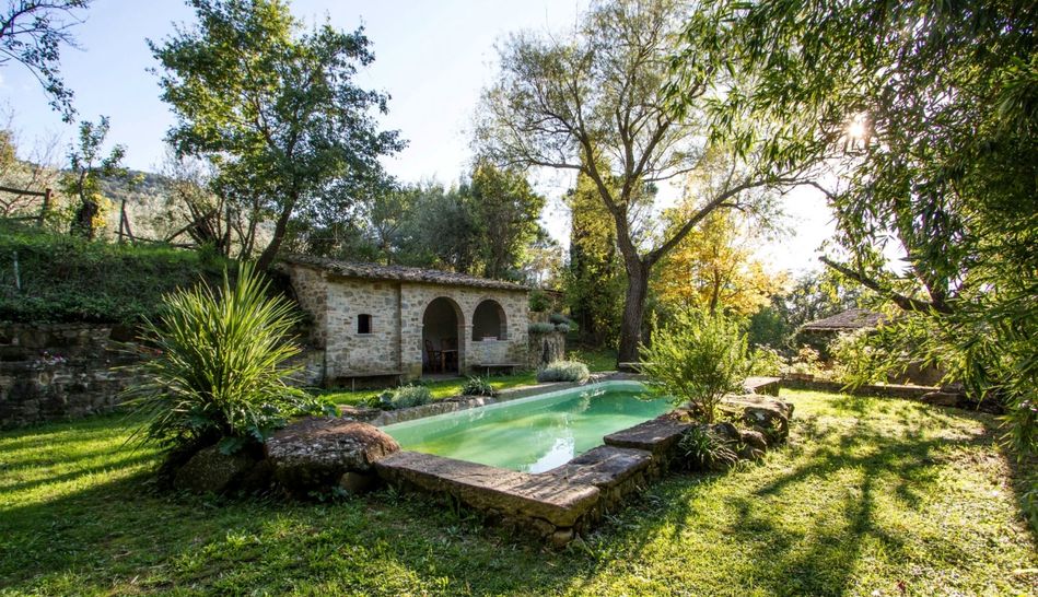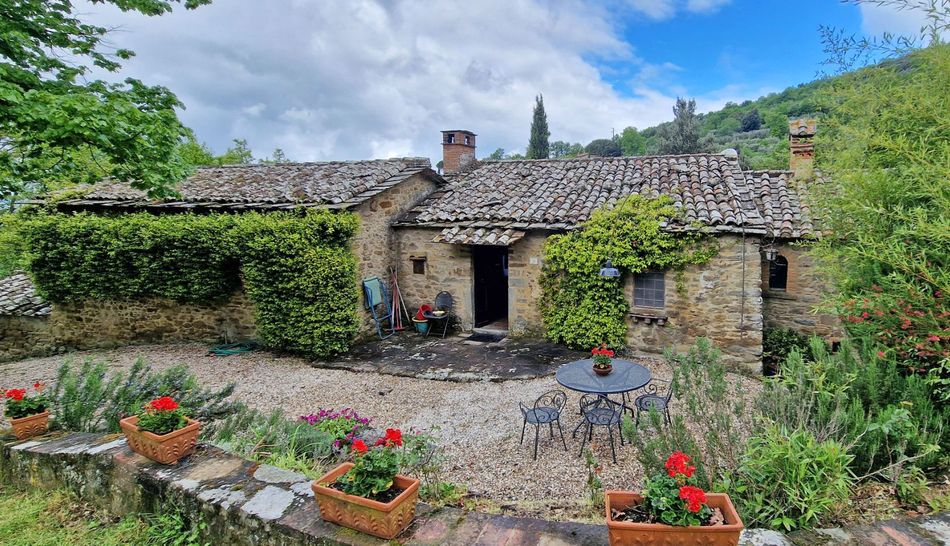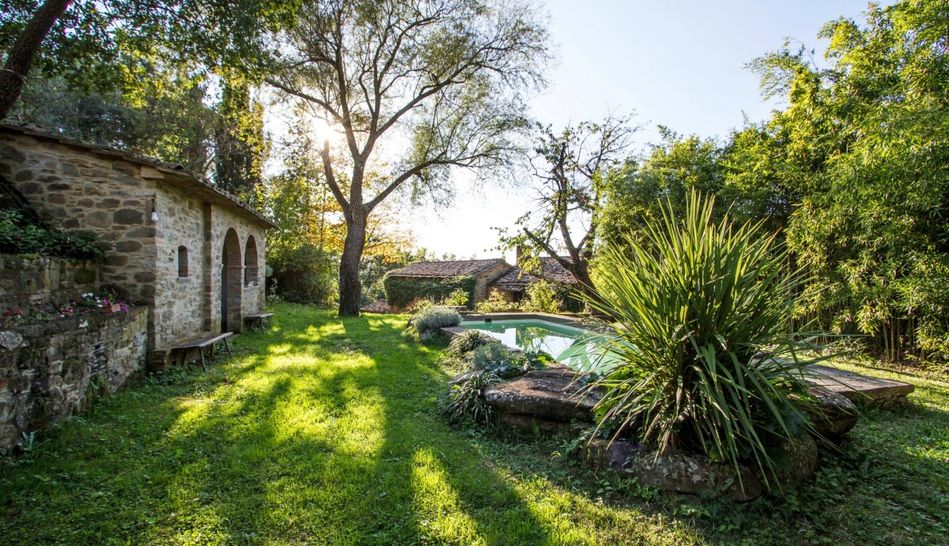 Charming property dating back to the 1700s, immersed in a magical environmental context, amidst woods and olive groves, for sale in the lush countryside of Cortona, just 10 minutes from the town.