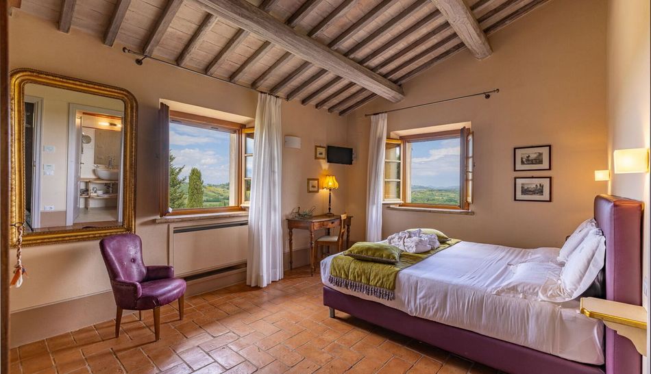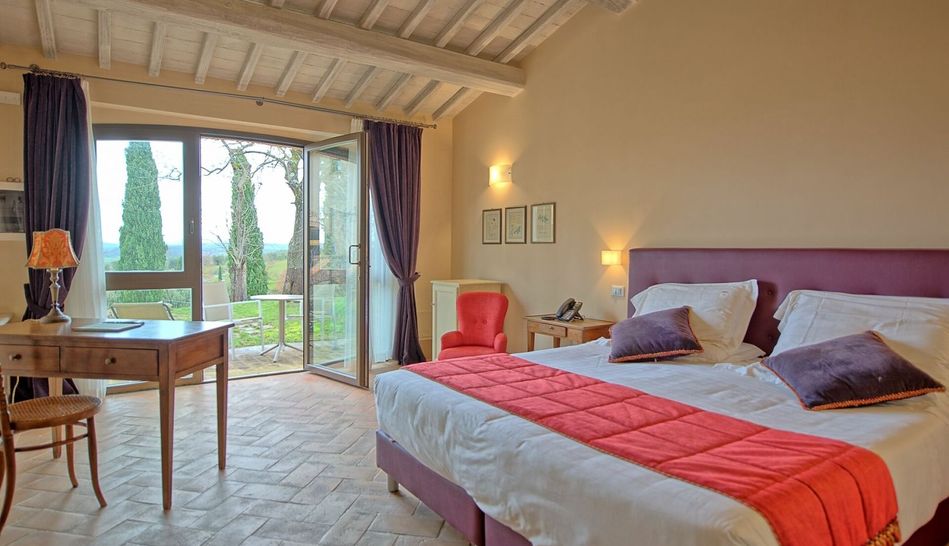 Wine estate for sale located in Tuscany in the heart of the Siena hills in the center of the Etruscan area, land of great wines, where nature is still intact and the landscapes are works of art.The prestigious estate complex covers 125 hectares, 25 of which are vineyards and includes a luxurious resort with swimming pool and spa, a large outbuilding, wine cellar, some outbuildings and two ruins to be restored.