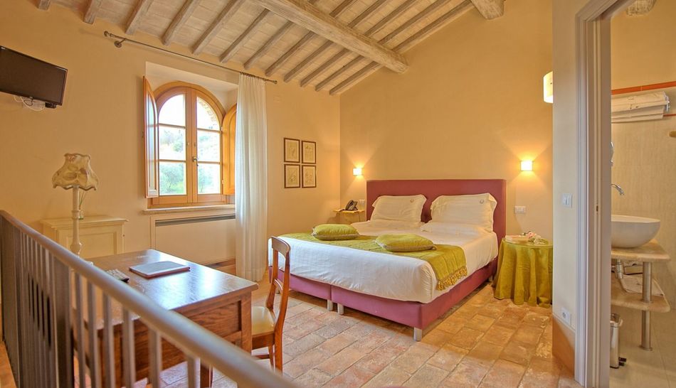 The resort of 1120 square meters approx. was born from the restoration of an ancient nineteenth-century manor house. Internally it has 8 rooms for guests plus 2 rooms for staff, 13 bathrooms, activity desk, kitchen and common living rooms. In the basement there are a Spa, a welcoming meeting room and some service rooms. All rooms are extremely functional, comfortable and equipped with air conditioning. It is possible to access the Spa directly from the rooms by elevator, the Spa includes herbal teas, indoor pool with whirlpool and counter-current swimming, Finnish sauna, fitness facilities and wellness center with Turkish bath and emotional showers. The resort includes a terrace, an outdoor pool, an indoor pool, a solarium, a perfectly maintained garden of about 1 ha. The annex of 150 square meters includes 5 bedrooms and 5 bathrooms for guests.The impeccably restored property features terracotta floors, exposed wooden beams, brick arches and old stone fireplaces.