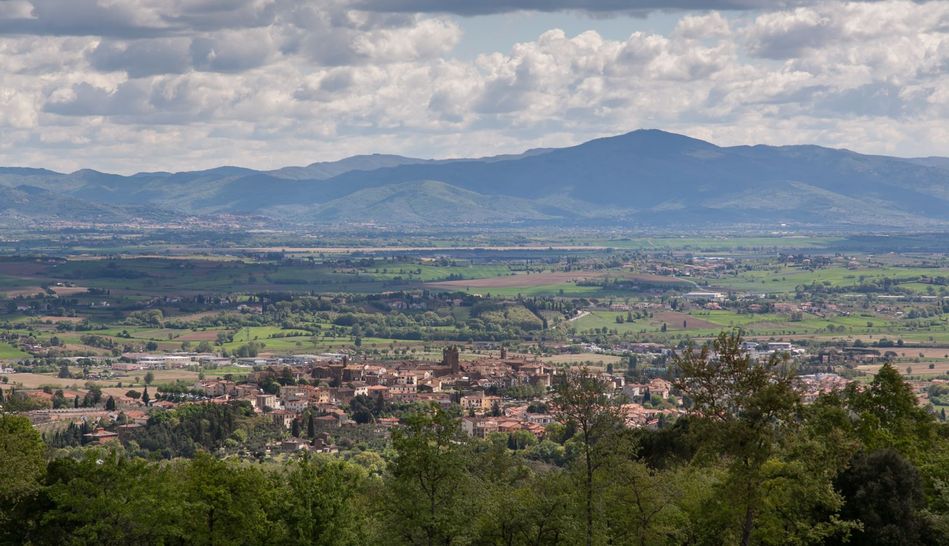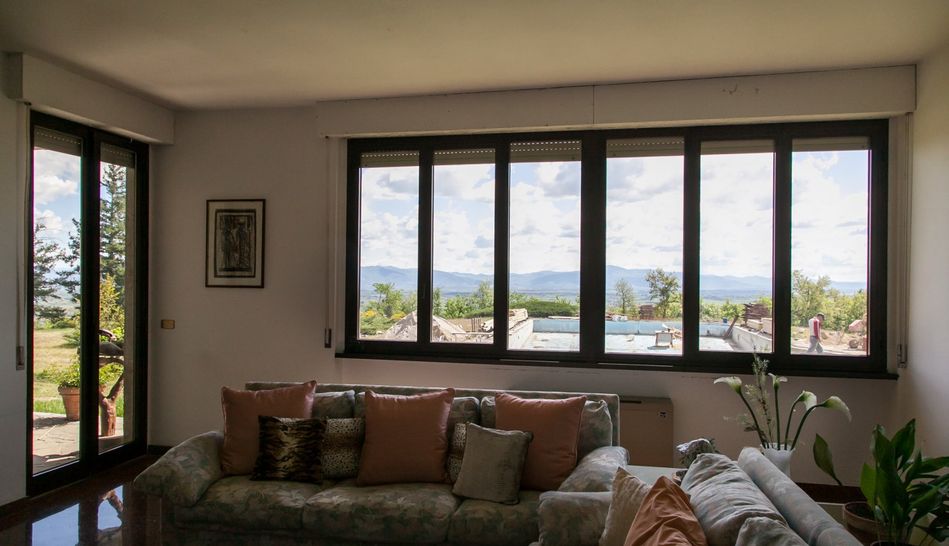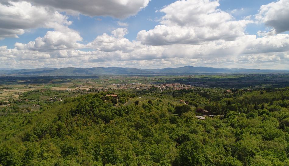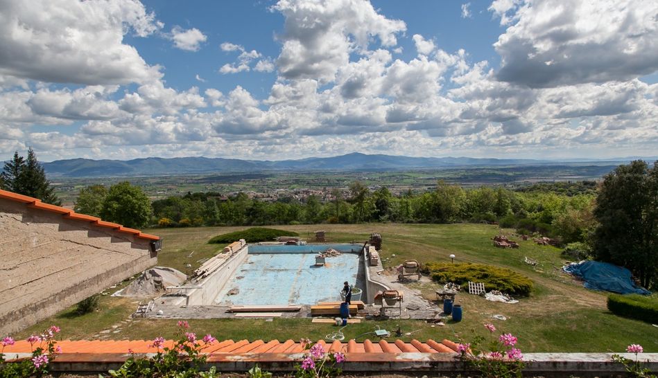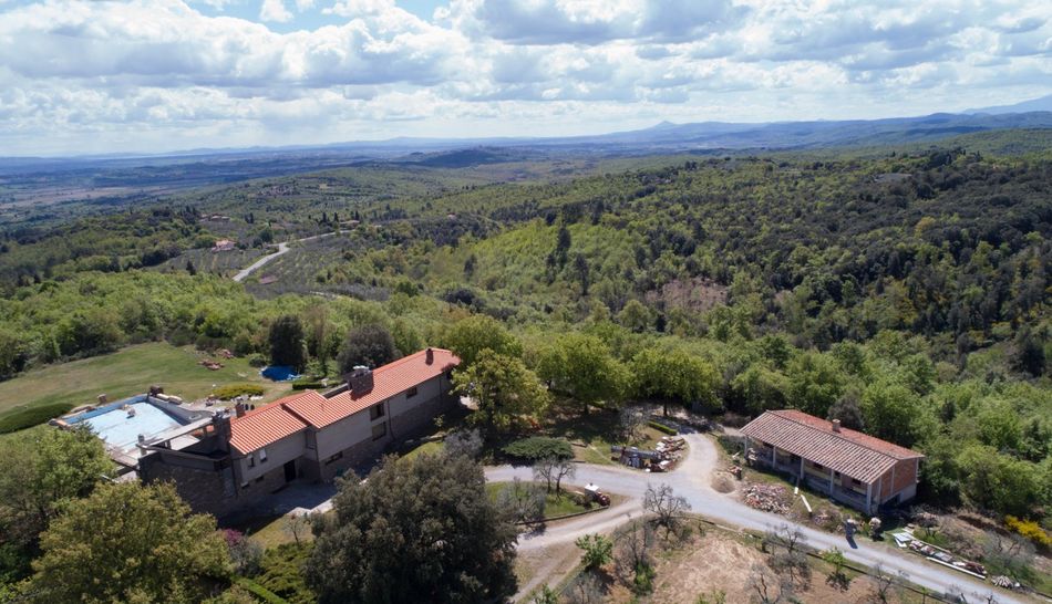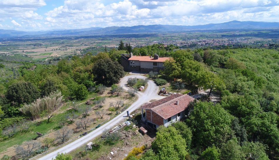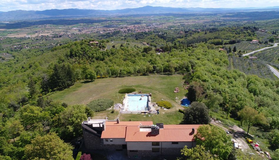 Monte San Savino. In a wonderful 360 dergee panoramic position across the Valdichiana, we propose for sale real estate with an Olympic pool enclosed in an atmosphere of exceptional privacy, surrounded by about 20 hectares of land.