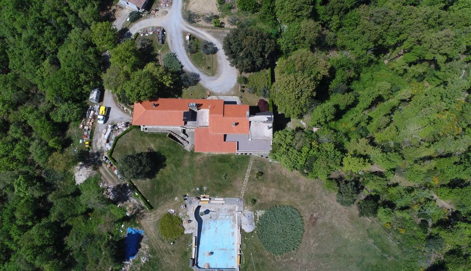 Around the villa for sale, a reserved park of about 10 000 sqm with beautiful panoramic swimming pool. The remaining 19 ha of land are mainly forests, arable land and olive groves.
