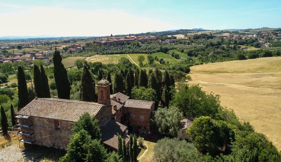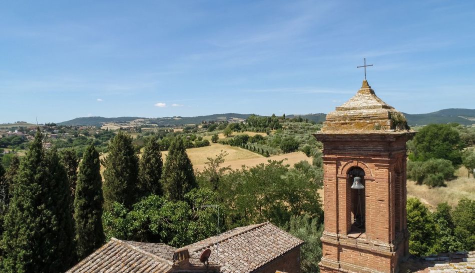 The ancient stone hamlet, built in adherence to a 13th-century church, rises majestically on a beautiful hillside, entirely surrounded by cypress trees and centuries-old olive trees that frame a wonderful panorama of the surrounding countryside and the historic center of Torrita di Siena.