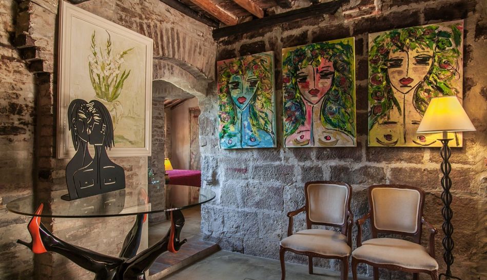 The entire property is owned by an artist who personally oversaw every detail of the restoration, creating a fascinating and unique atmosphere, as only an artist's residence can do.