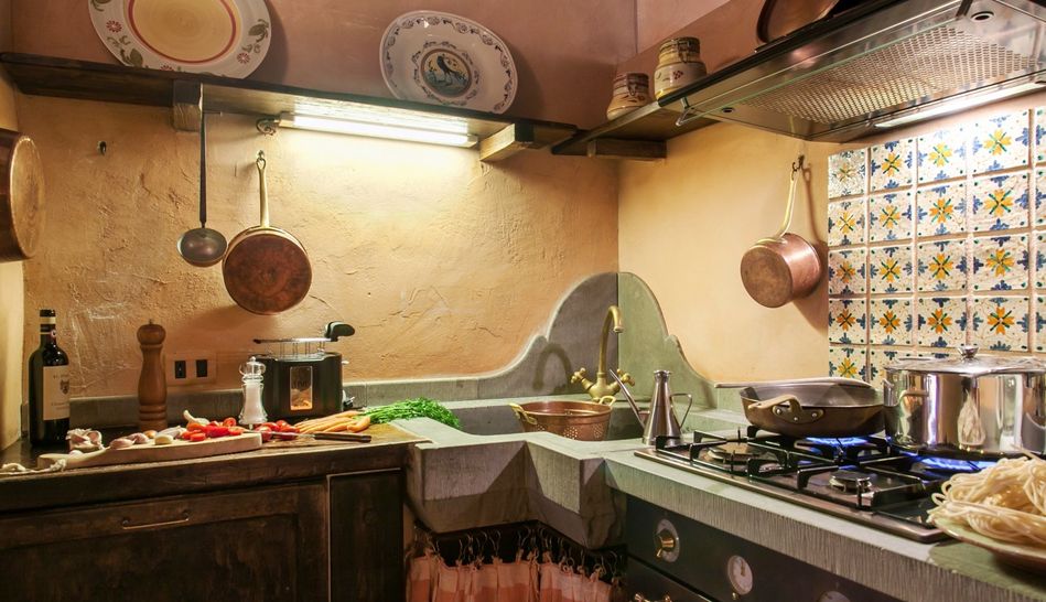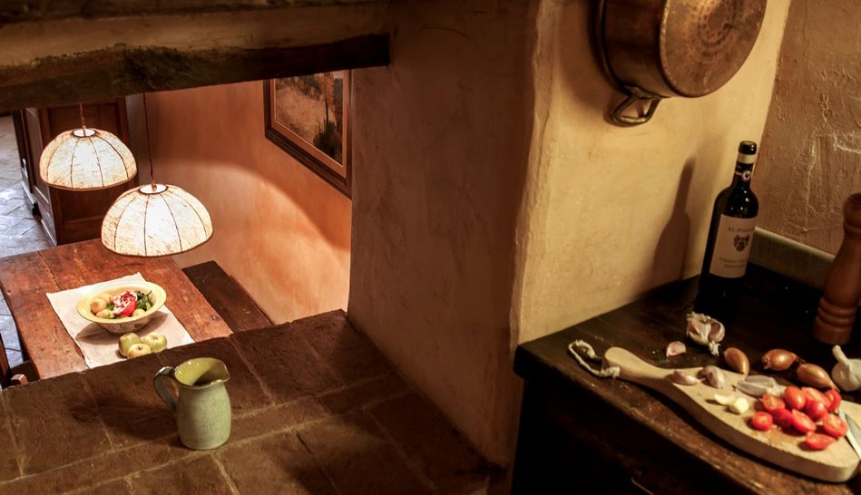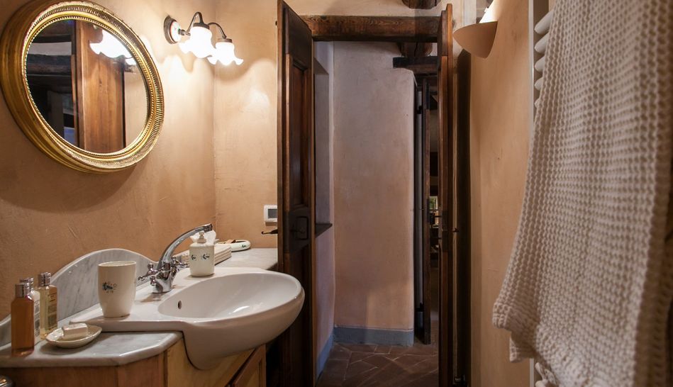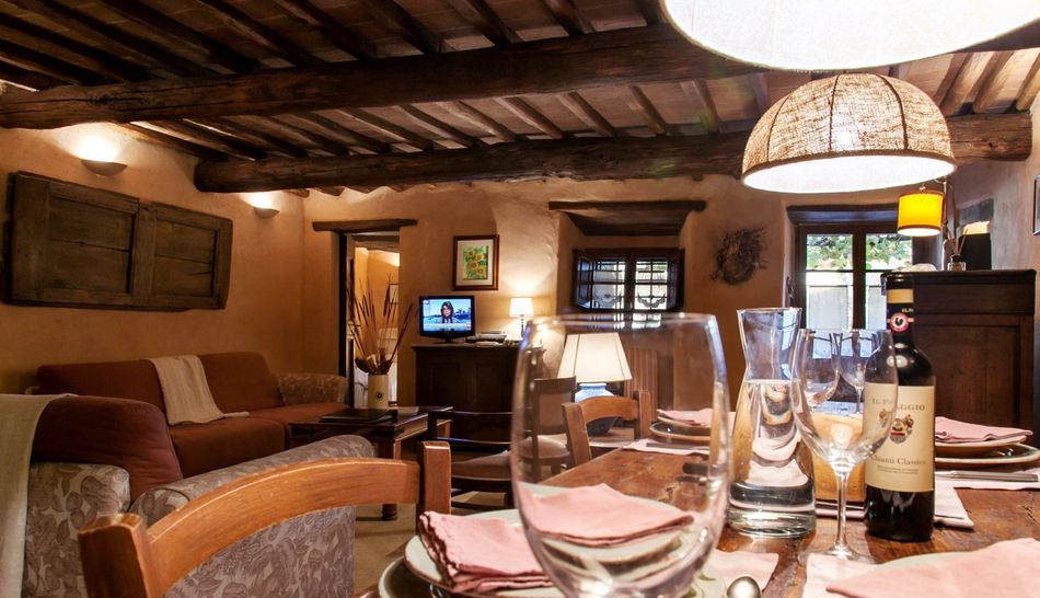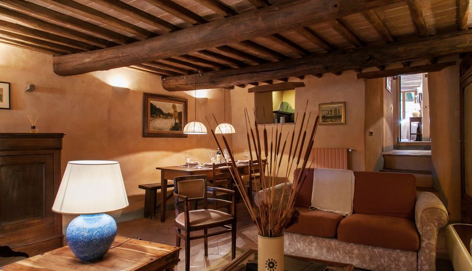 The apartment of 103 square meters. It consists of two bedrooms one master suite and a double room, kitchen, fully equipped with beautiful sink and worktop in Tuscan grey stone, a large open space with living room, dining area and two bathrooms with a large shower and a bath. As you enter the house you get the feeling of stepping back in time, with a clever combination of traditional furniture, beamed ceilings, antique terracotta floors and a great sense of space. Outside there is a lovely dining area walled with stone table and wrought iron chairs.