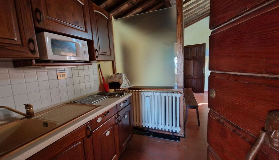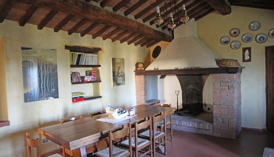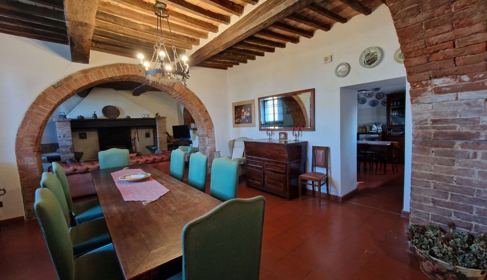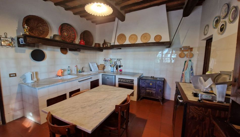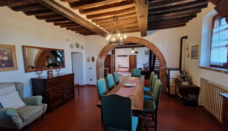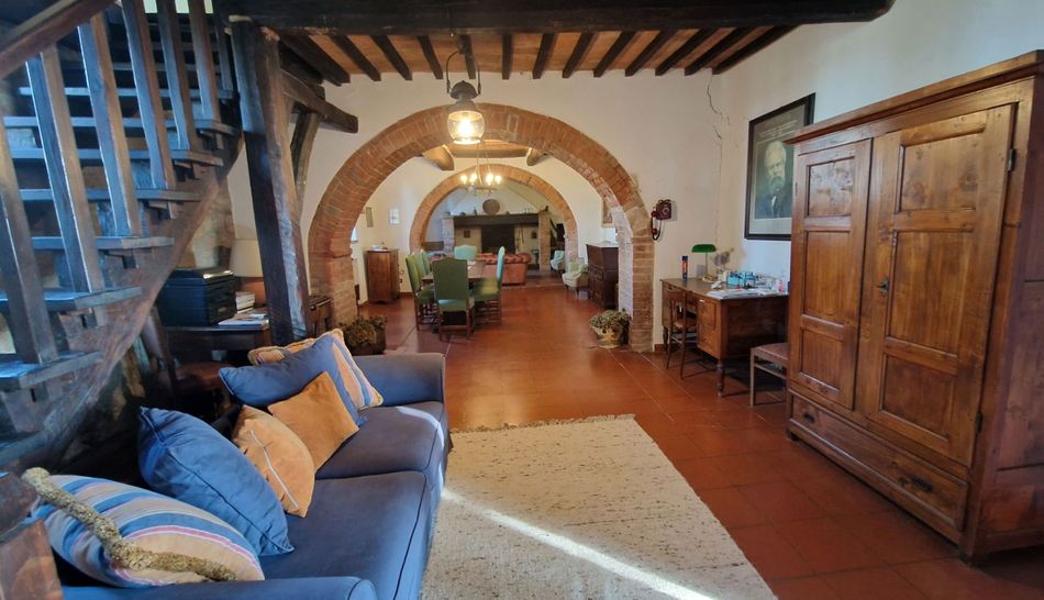The first floor has two entrances: the main external one, with its characteristic loggia and ancient terracotta staircase, or through a practical internal staircase. On the first floor there are a living area with fireplace and kitchen, 7 bedrooms and 3 bathrooms.