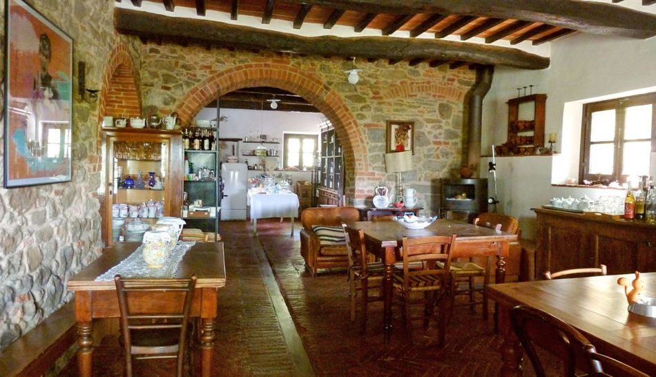 Civitella in Valdichiana: Ancient farm for sale with farm land and swimming pool.The original core of the building is represented by an ancient XVI century tower house, extended over the years until reaching, at the beginning of XX century, the typical structure of the Tuscan farmhouse, with all the buildings arranged around the farmyard, heart of the past domestic life.The complex was then completely renovated, respecting and enhancing those elements and characteristics that make Tuscan homes unique: large fireplaces, exposed beams, handmade terracotta and pietra serena.