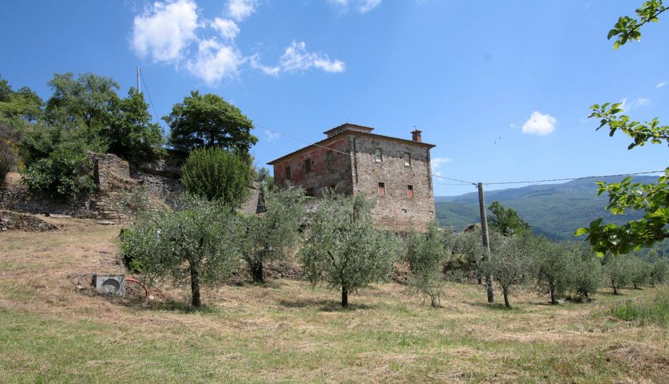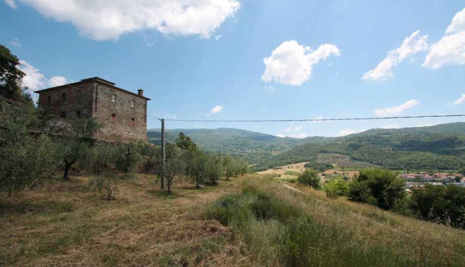 Subbiano: Country house in the hills of Subbiano, placed in a hilly and panoramic town of Arezzo province of great environmental value, and with a view of Capolona Subbiano and on the front of the Alpe di Catenaia. The property includes: the villa (included in the list of buildings of particular cultural and environmental value, existing in agricultural areas) and three stone outbuildings to be recovered, all surrounded by 1 ha of land with olive trees.