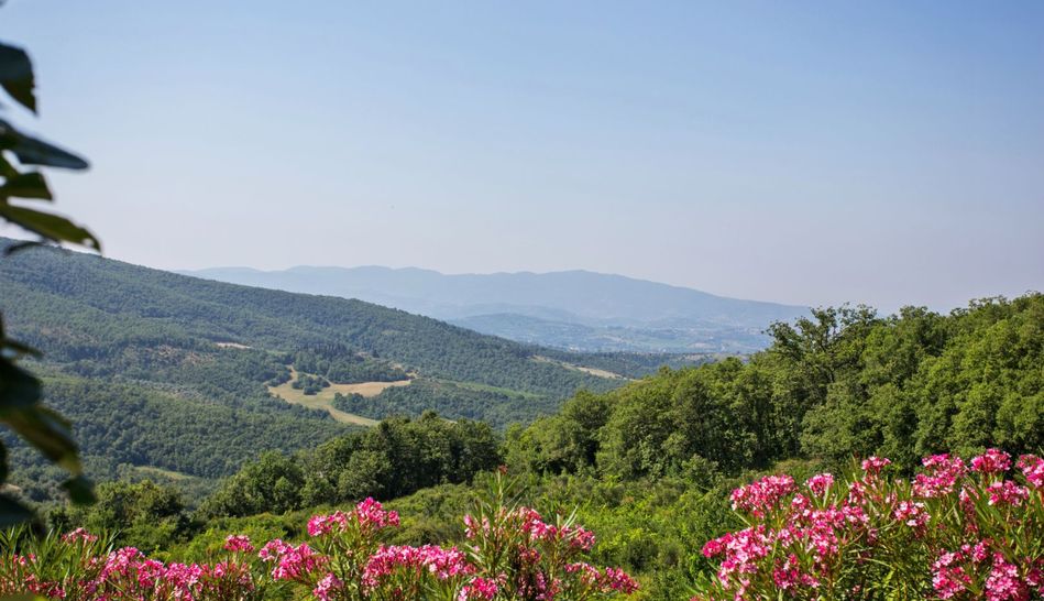 Property for sale on the sloping part of the hill of Arezzo, just below the summit that protects it from cold winds, completely exposed to the south.