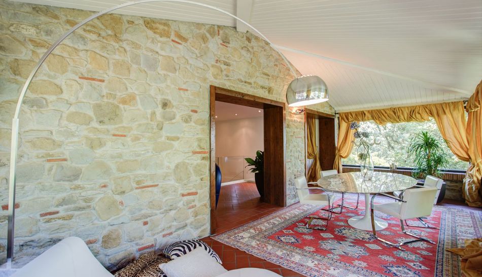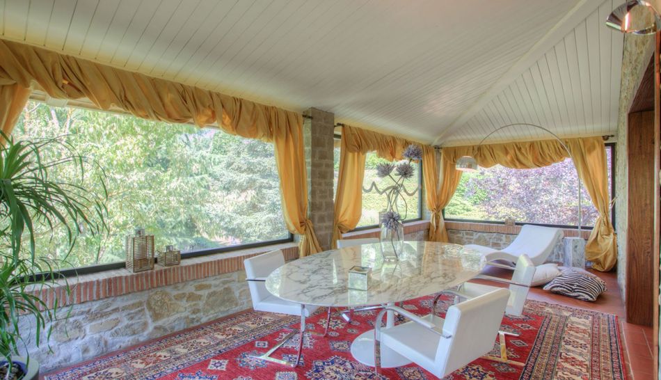 The first floor, which can be accessed via an internal staircase, houses the living area, consisting of a closed veranda with a view over the city of Arezzo and the park and a relaxation area with TV and wood-burning fireplace. On the same floor stands the sleeping area, consisting of 2 large bathrooms (one with a large whirlpool tub and the other with a rain shower with glass box) and 3 bedrooms, connected with the rest of the sleeping area.