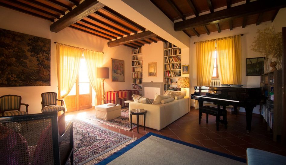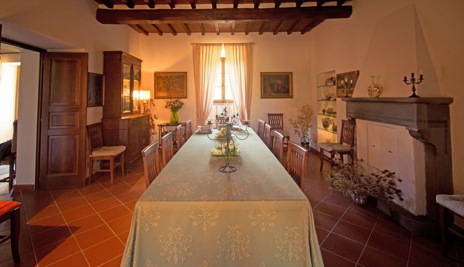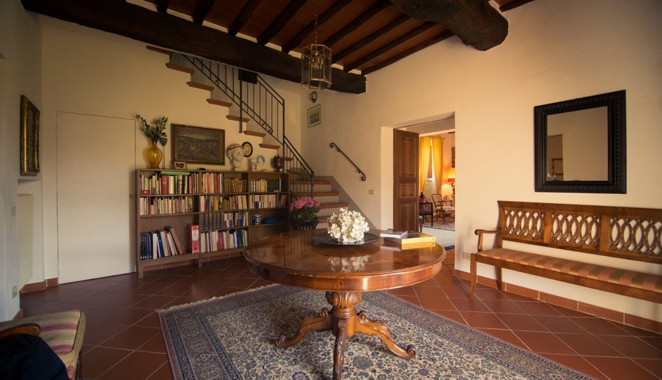 Cotto tiles have been used for the floors and wooden beams for the ceiling of every room, some original.
