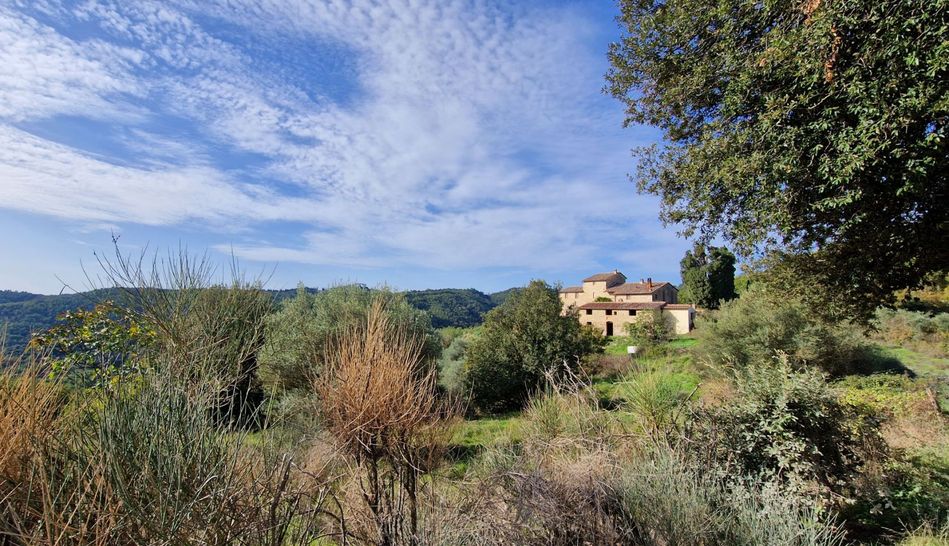 The property is 150 meters away from the local access road and is hedged by holm oaks and cypresses, which provides a high level of privacy and separates the property from the street. Opposite the farmhouse there is a huge open space, on two levels linked by footpaths; the swimming pool is currently under construction in a secluded area and the digging out has been already performed (planning fees for the swimming pool paid).