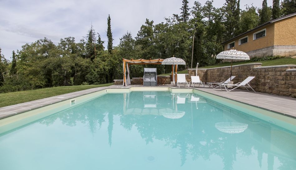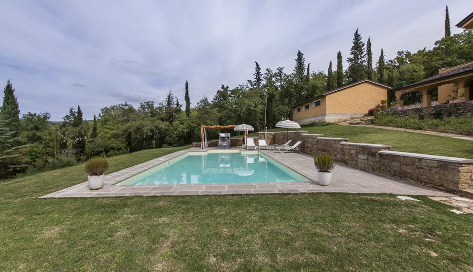 Surrounded by 2.0 hectares of parkland with a well-kept garden and a 12×6 m swimming pool, it can be considered one of the greatest examples of rationalist architecture in the province of Arezzo.