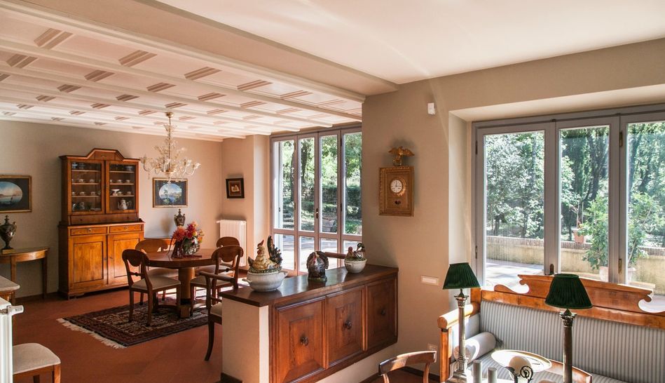 The villa of approximately 500 sqm has been completely restored and enlarged in 2012 by the current owner, enhancing the fine interior finishes, such as the chestnut-wood fixtures and the original Tuscan terracotta floors.