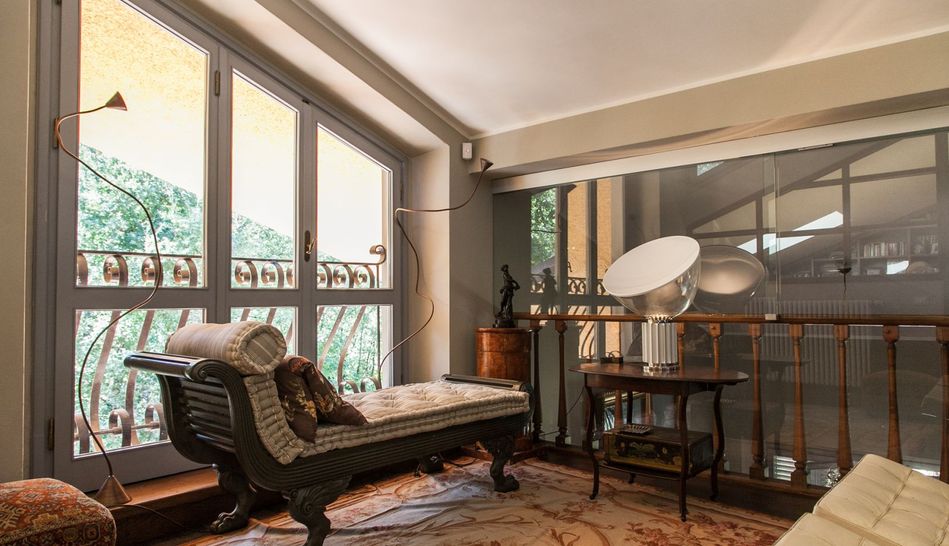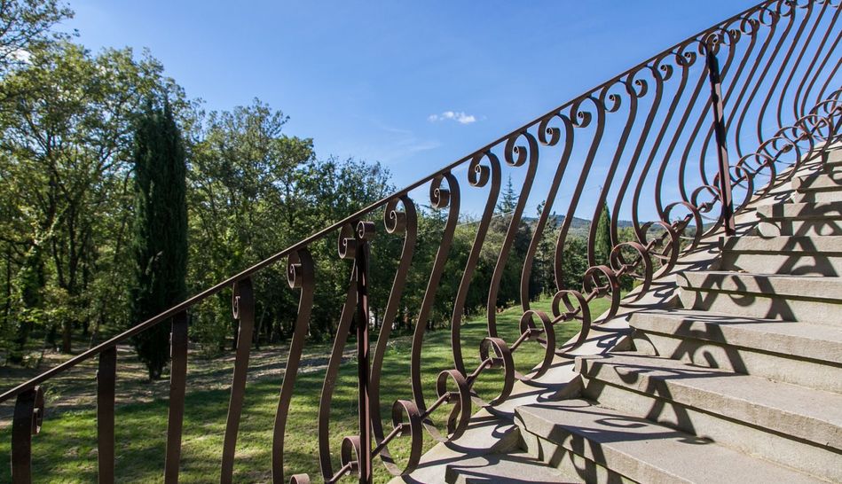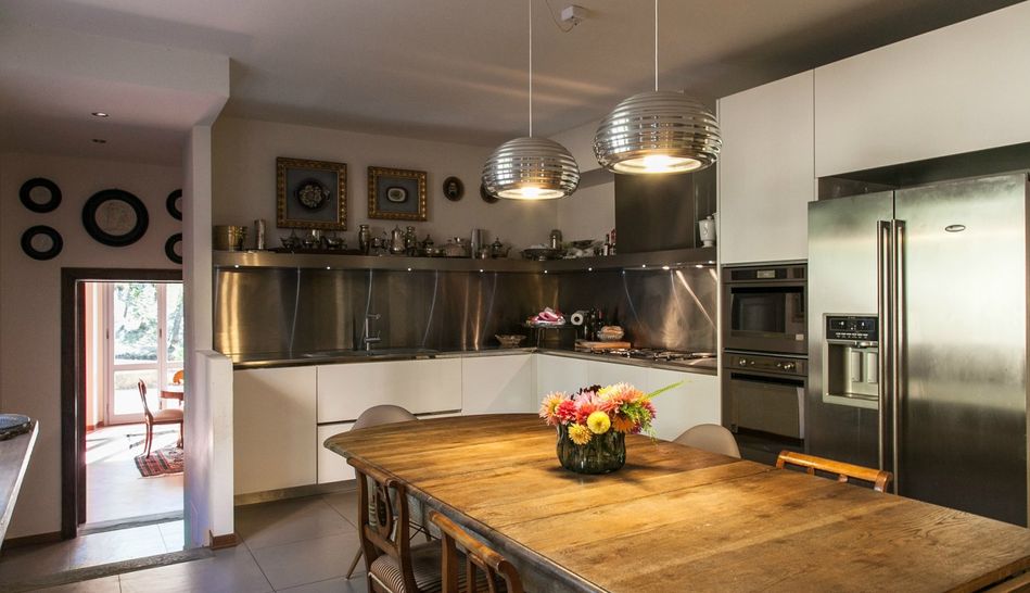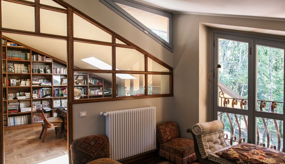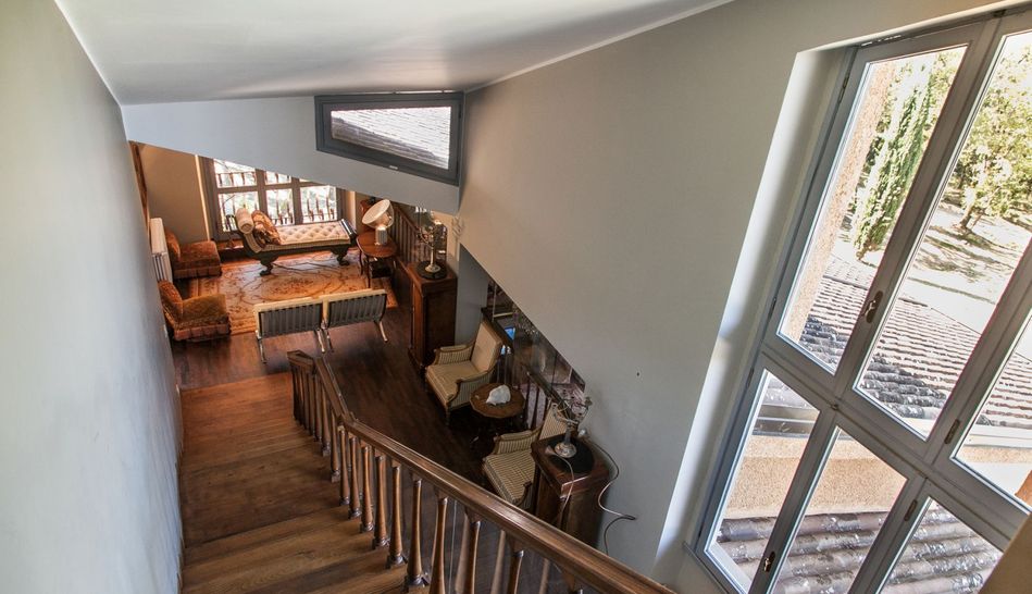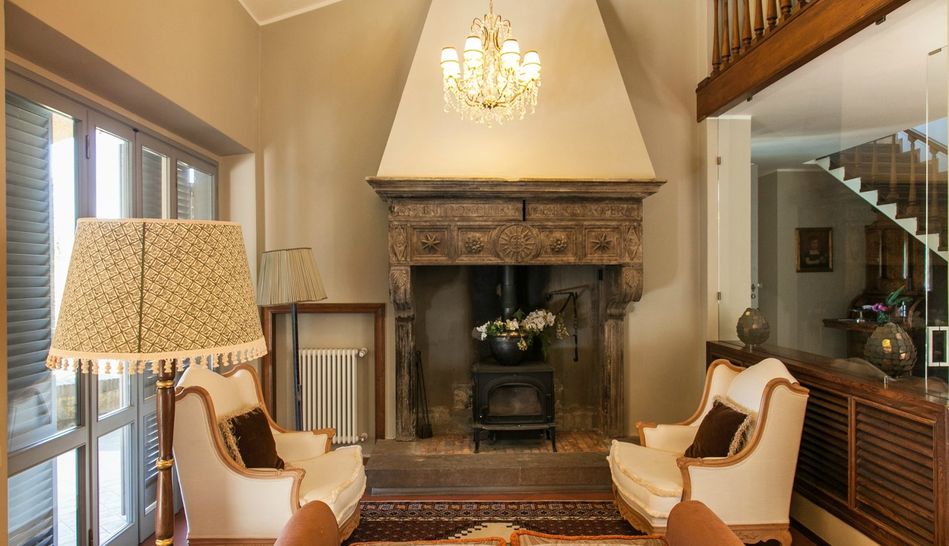 Even the interiors of the Villa, custom-made in solid chestnut by Tuscan craftsmen, are inspired by the design of Italian Rationalism: especially noteworthy are the majestic chestnut staircase that leads up to the first floor and the magnificent 17th-century Italian stone fireplace.