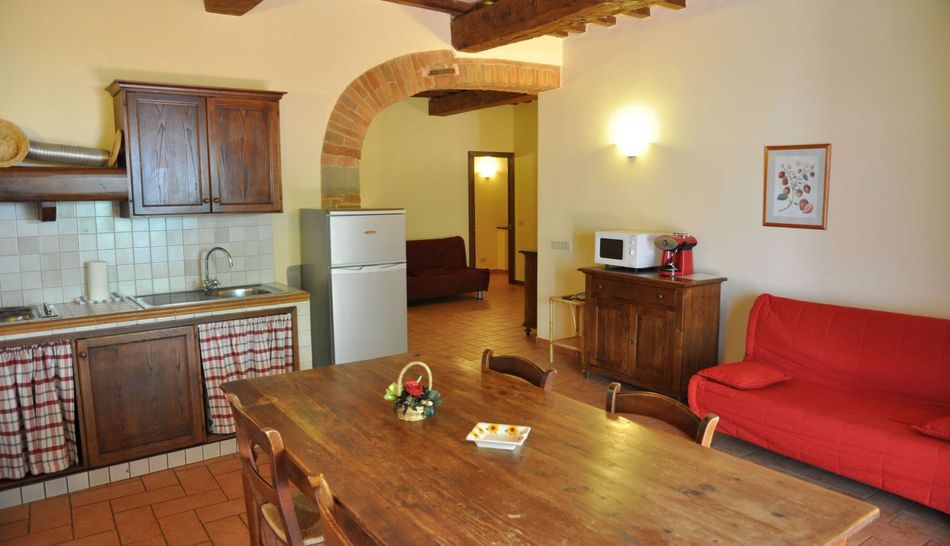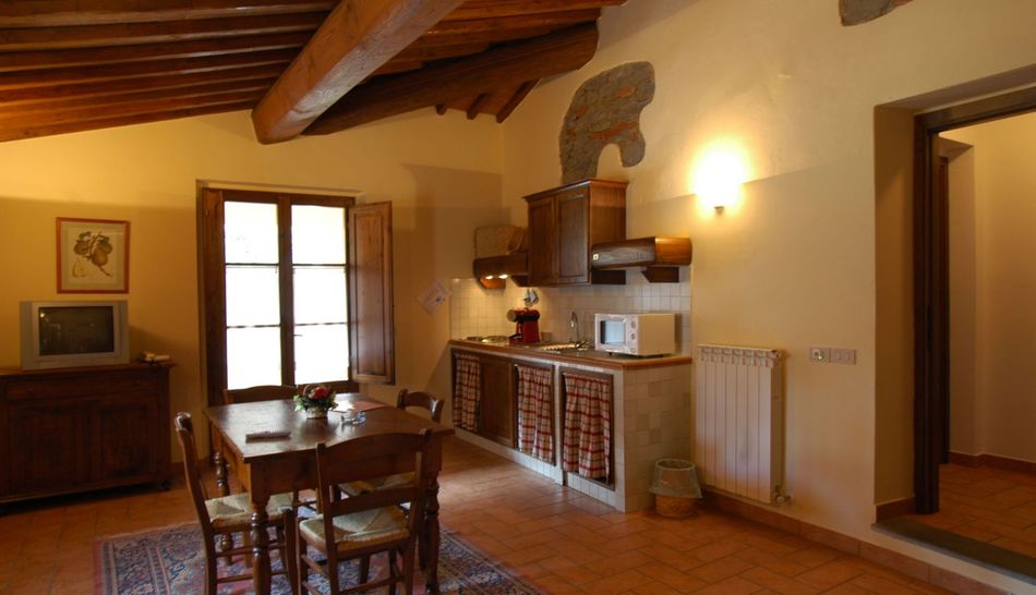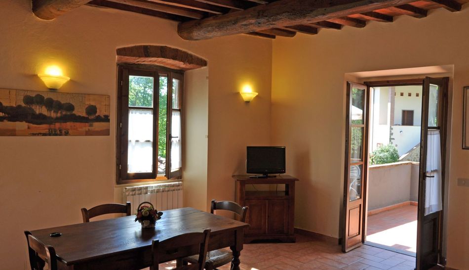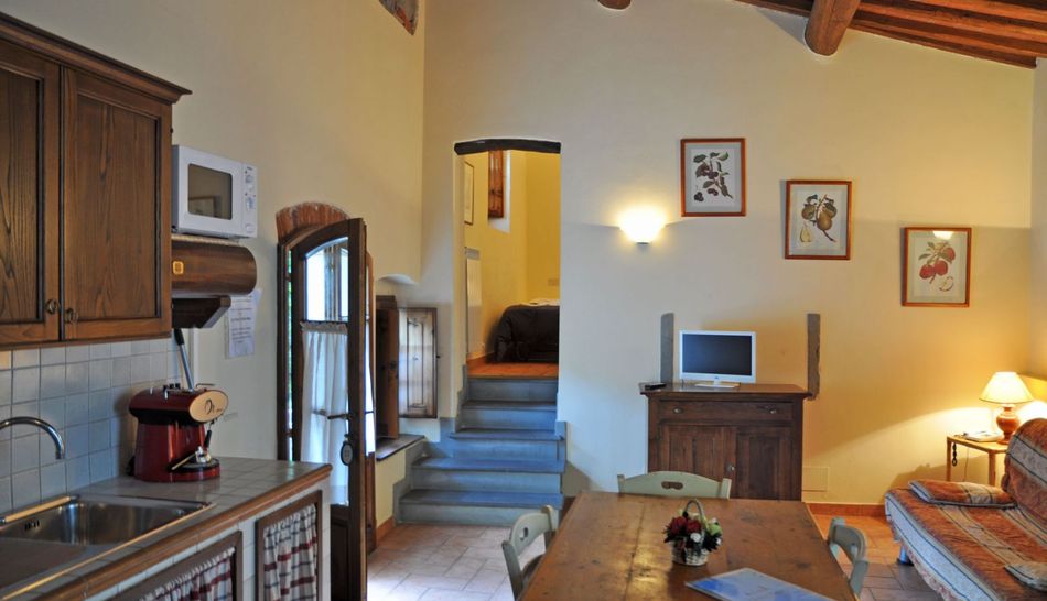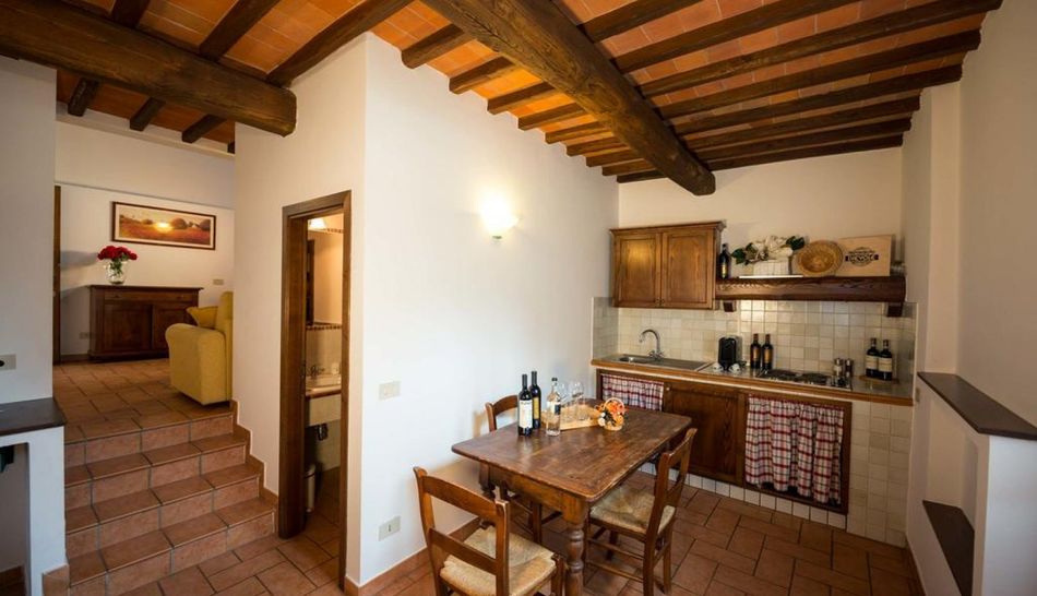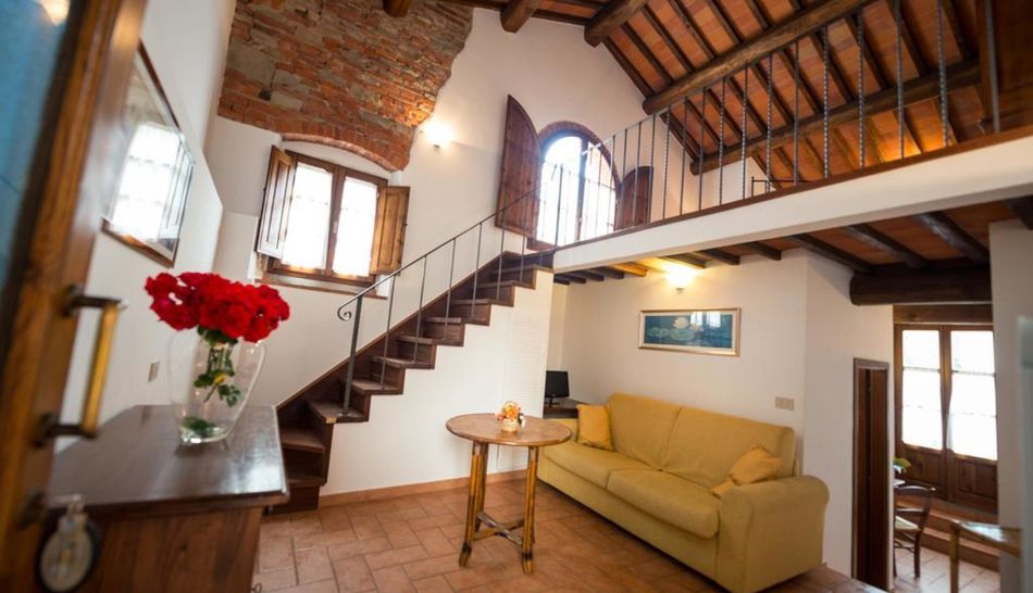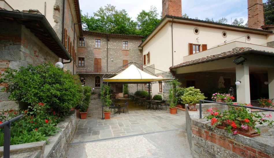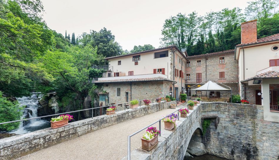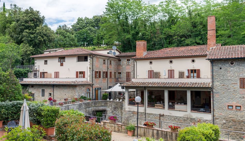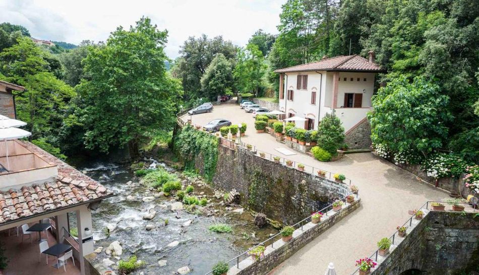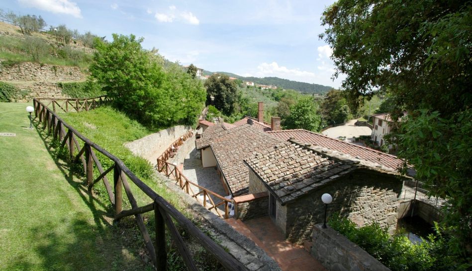 The structure includes tennis court, five-a-side football and swimming pool. Its central location offers the opportunity to visit the major cities of art; and not far from the Prada, Gucci, Armani, Ferragamo, Valentino, Dolce & Gabbana outlets. The property is divided into 19 cozy apartments with independent entrances and equipped with all comforts. The apartments have 1 or 2 bedrooms, bathroom, large living room and dining room with kitchenette, some have a private terrace or balcony. From the central square of the residence you can access the restaurant with an internal capacity of 40 seats and an external seating capacity of 50, created in the room that formerly housed the mill. Next to it we find a wine shop