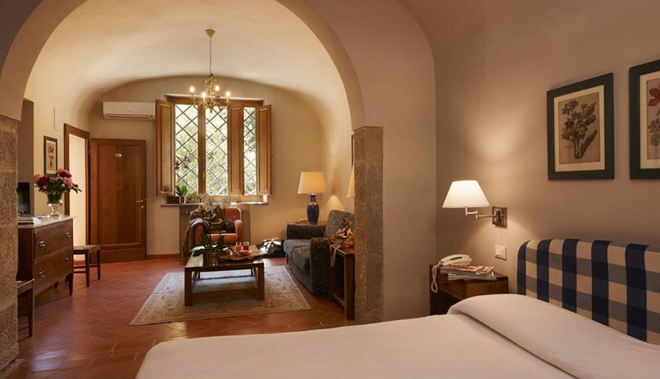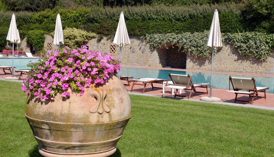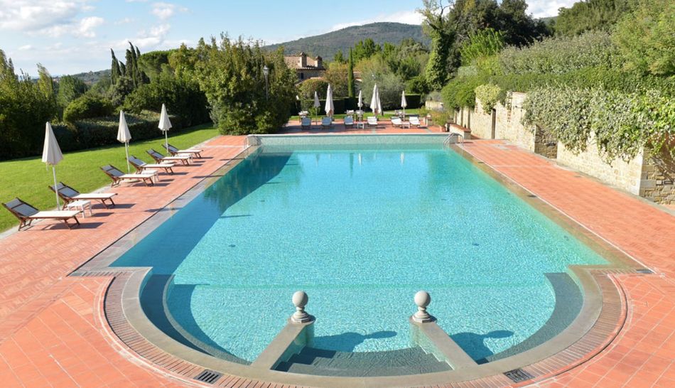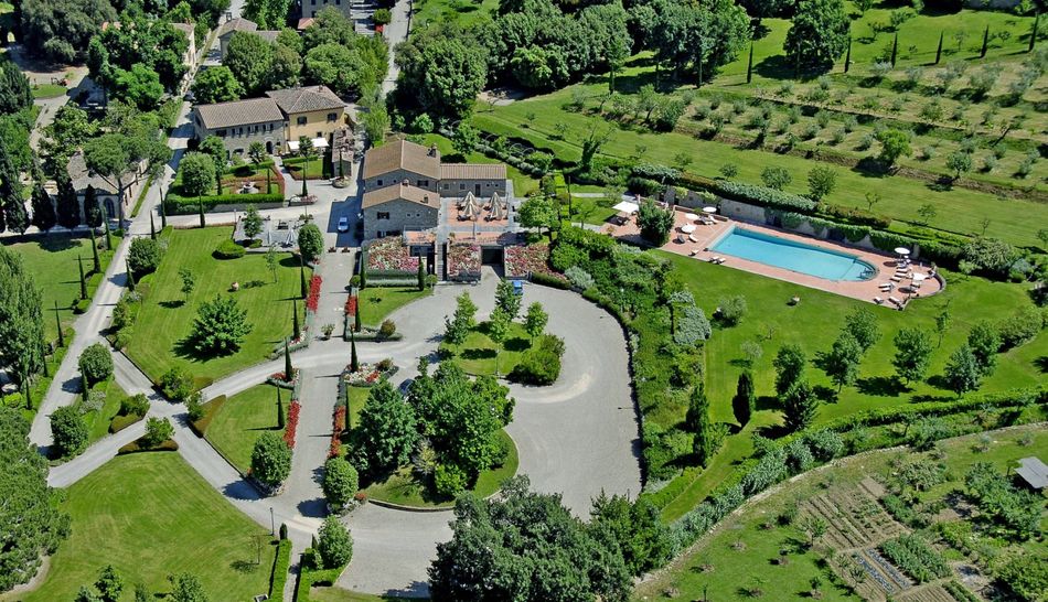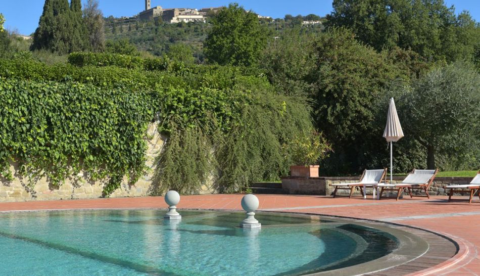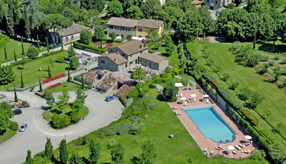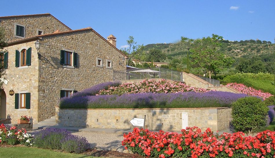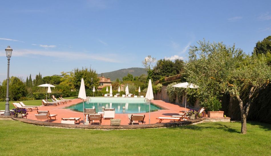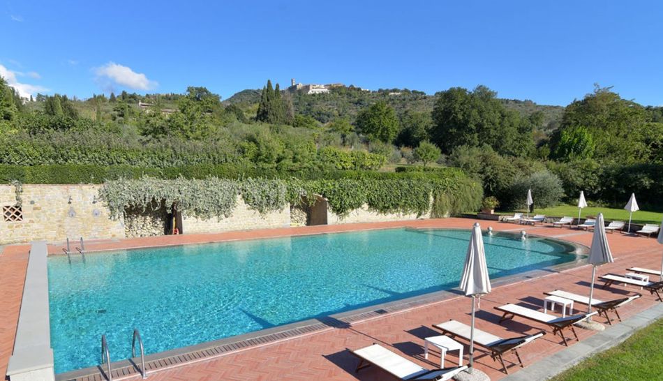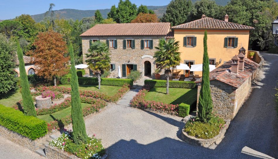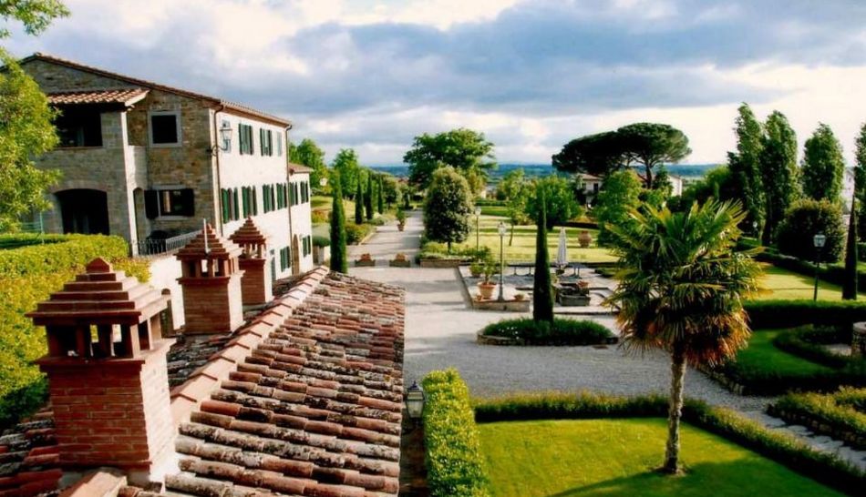 Cortona: At the feet of this wonderful town, renowned for its historical and environmental beauties and for having been one of the first Etruscan villages, for sale palatial ancient resort surrounded by a neat parkland set in the lush Tuscan countryside's hearth. The complex dates back to '800 and stands in a stunningly beautiful spot, hidden away in a quiet position, from where, though, all most artistically important cities of the area are easily reachable, for instance Florence, Arezzo, Siena and Perugia.The hotel was once a land settlement that has been fully restored and renewed bringing it back to its original charme. It is composed of one main manor of about 950 sq.mt. plus some rural and housing buildings, such as a store house of 220 sq.mt. and one small but lovely hotel with 12 bedrooms divided in 8 cozy apartments, restaurant and lecture room. In the outside there are also one little church, some outbuildings, two to restore country houses, one with a surface of 735 sq.mt. and the second one of about 345 sq.mt. in addition to a further volume to be recovered for a total of 1500 cubic metre. The whole living surface is 7500 sq.mt. approximately.The complex is set inside a big parkland of 7,5 ha featuring wonderful flowers, lush flower beds, roses, ornamental plants, timber trees and fruit trees. Swimming pool 10x25, Jacuzzi, changing rooms and a bright terrace of 800 sq.mt.