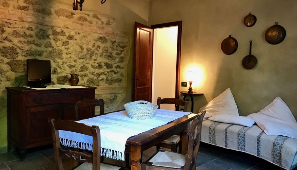 Buildings. The 1st one-level unit is 650 sqm has 5 apartments, an indoor pool with gym, lounge, restaurant, professional kitchen, services and locker rooms. It has four studio and one bedroom apartment, with heating and air conditioning, all with private entrance and courtyard. On the basement we find a laundry room, utility rooms (pool and the property), with dual LPG and wood heating systems. The 2nd house is 700 sqm on two levels with 7 apartments: on the ground floor there are 2 three-bedroom apartments, 2 two bedroom-apartments, a studio and 2 bedrooms, while on the ground floor we find 2 apartments with balconies. The 3rd stone house is of 120 sqm, with portico and garage, used as the owner’s residence with large living room, kitchen and bathroom on the ground floor and bedroom with walk-in closet on 1st floor. The 4th stone house is 50 sqm, on two levels, with living room, kitchenette, double bedroom and bathroom. The reconstruction took place in respect of Tuscan tradition, with precious craft materials. Cotto handmade for outdoor flooring, local travertine stone for the interior. Floors with heating/cooling system. The walls internally are treated with a special stone Siena tecnique. Isolation voids. Bathrooms with heated towel rail.