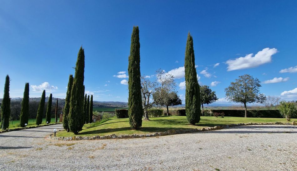 Land: The property has 4.5 hectares of land, of which one hectare of garden finely planted and completely fenced with automatic gate and access through a beautiful cypress avenue, the remaining hectares are cultivated as lawn with olive trees and woodland.