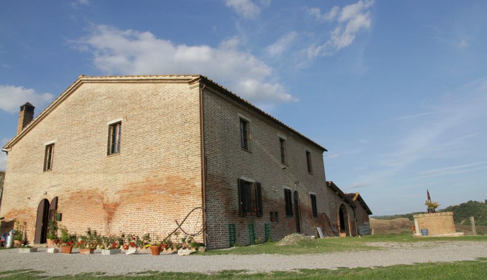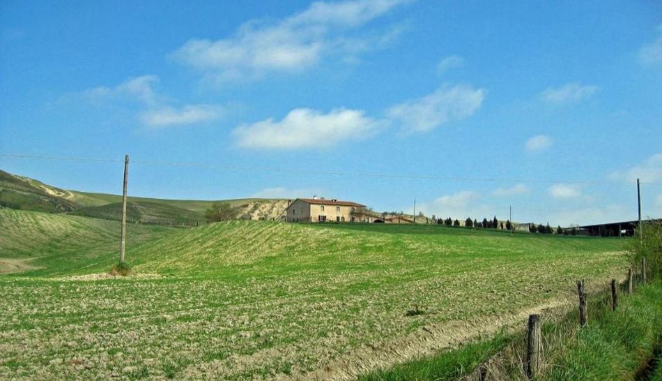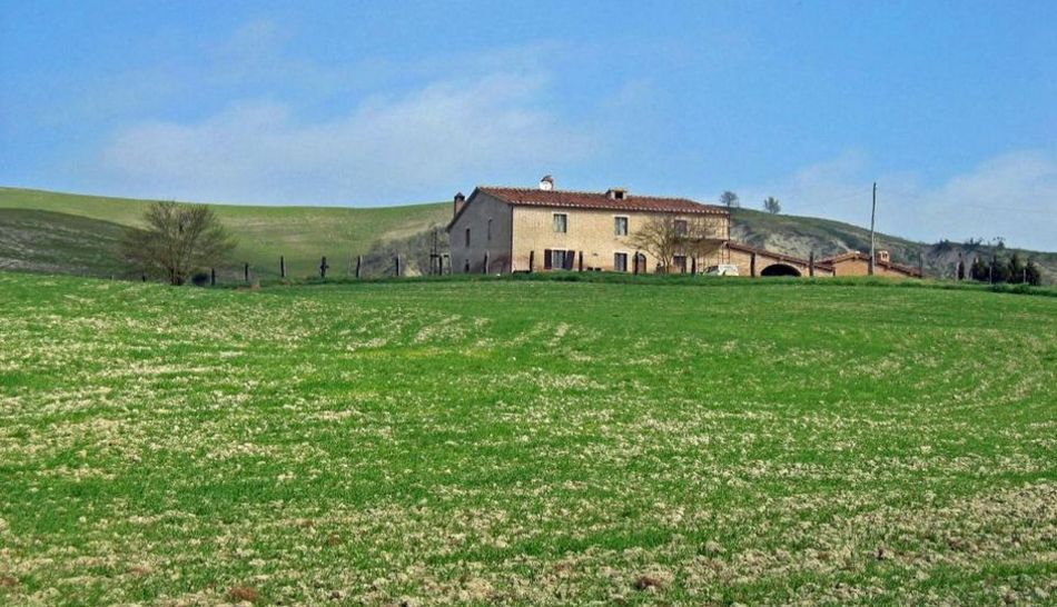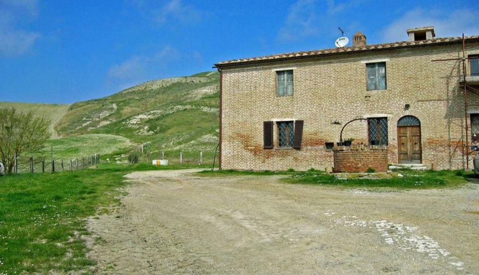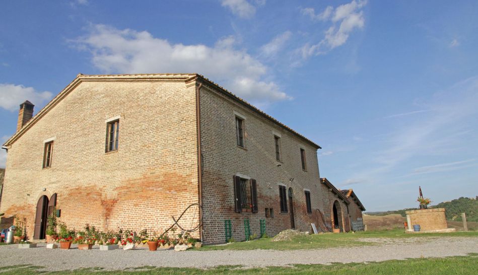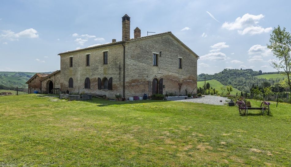 The property for sale consists of a 570 sqm brick farmhouse divided into three flats, a shed and a barn, surrounded by 1.5 hectares of land, with the possibility of purchasing up to 45 hectares.