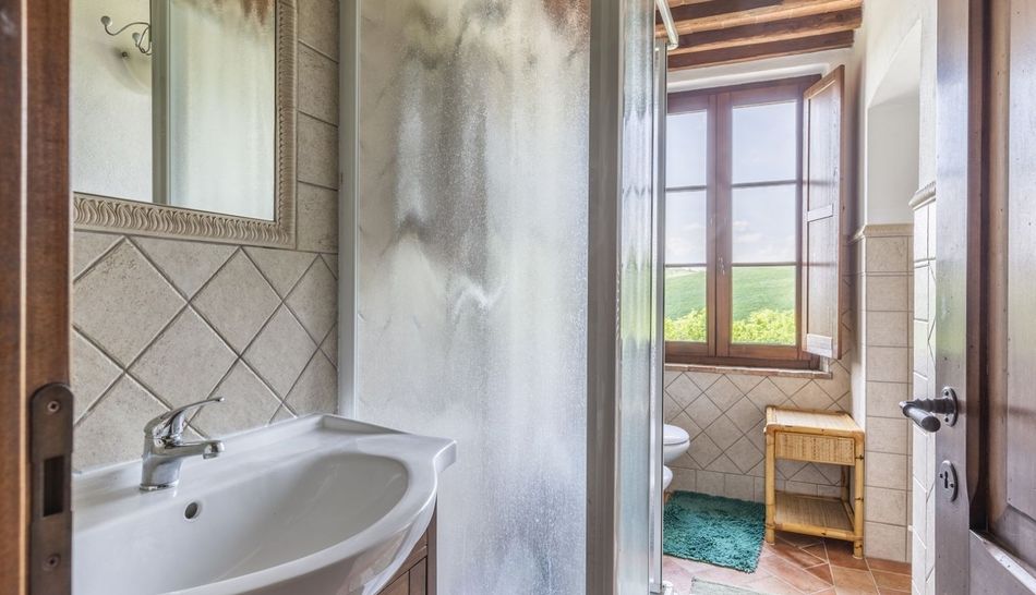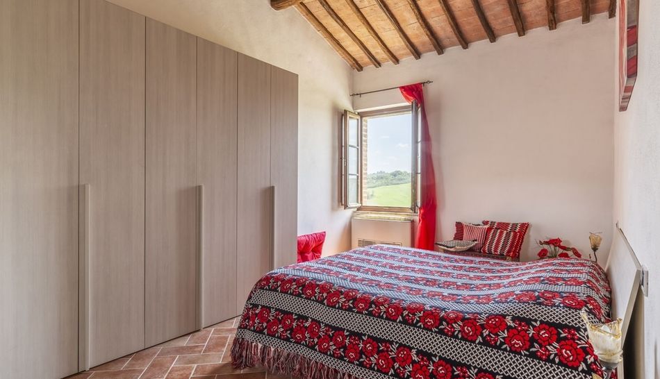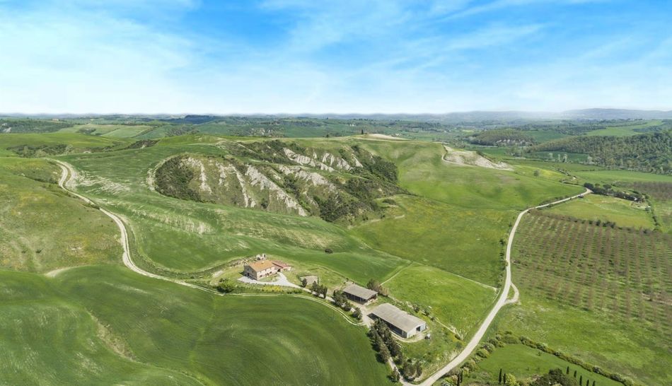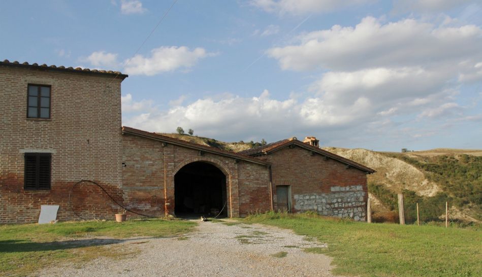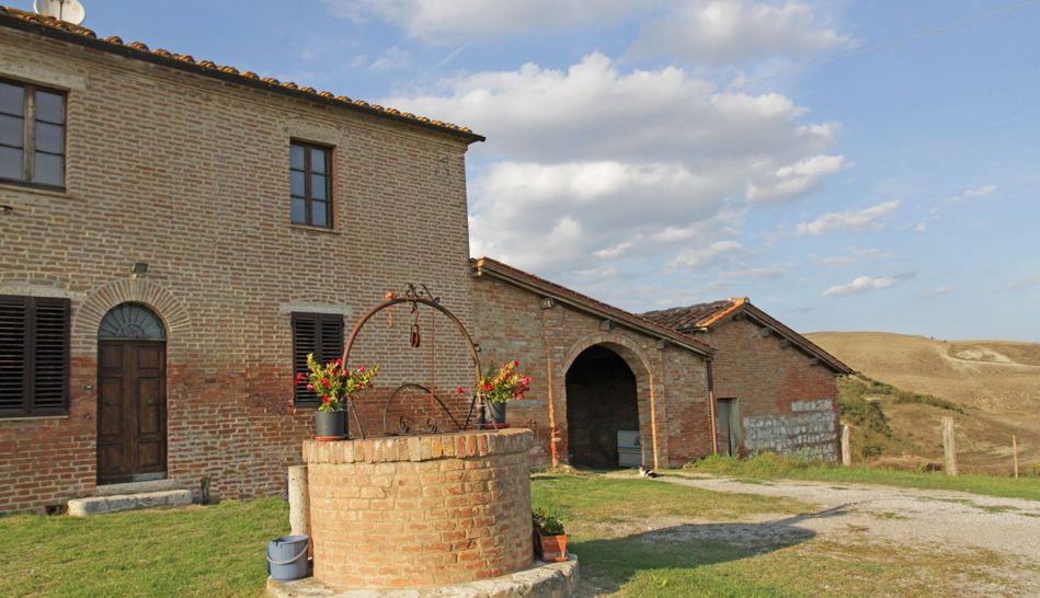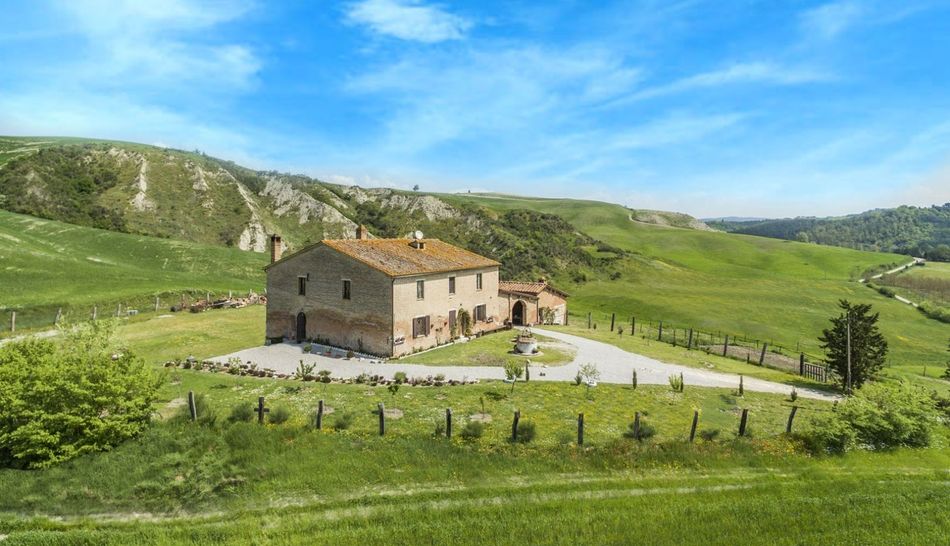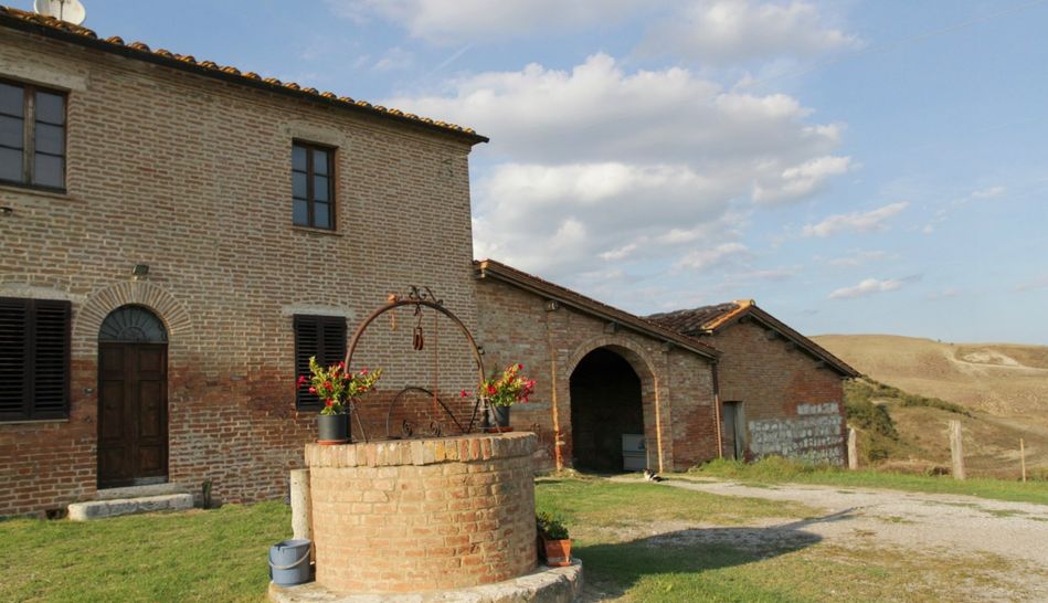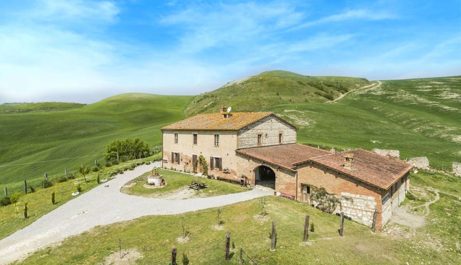 This enchanting property is for sale in Asciano, framed by the sinuous hills of the Siena countryside.