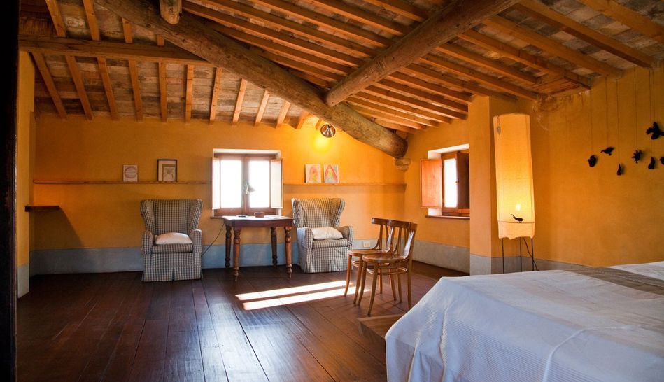 The first and second floors, accessed by an external staircase, are composed of four suites, with independent access, managed as an accommodation facility. Very bright and spacious, they are furnished with natural materials to maintain harmony with the environment and the territory. Each suite enjoys an enchanting view of Montepulciano and is equipped with a bathroom.