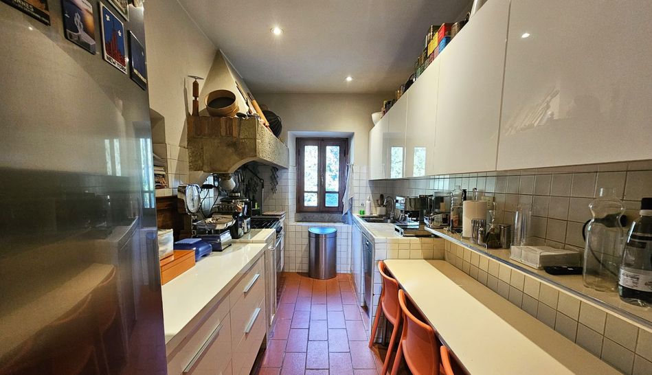 On the first and second floor there is the main flat, consisting of a kitchen, a living room, a study, a terrace, 4 bedrooms and two bathrooms.