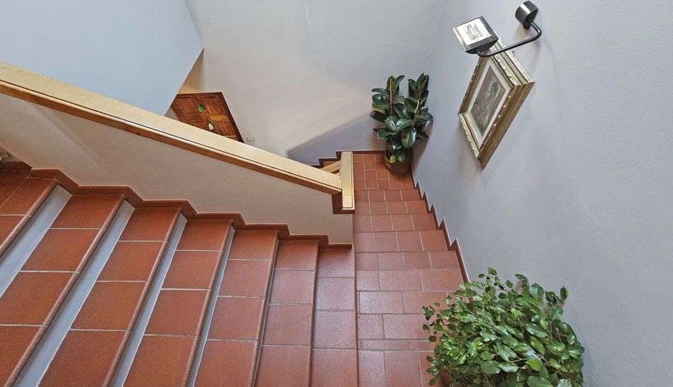 The villa, which is accessed via an external staircase with loggia, is divided into two flats that are internally connected.