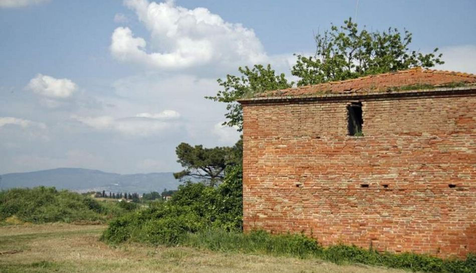 Montepulciano. This property to restore has extremly beatiful panoramic views stretching down through the valley and the surrounding countryside and is composed of a main brick farmhouse and an old stable.