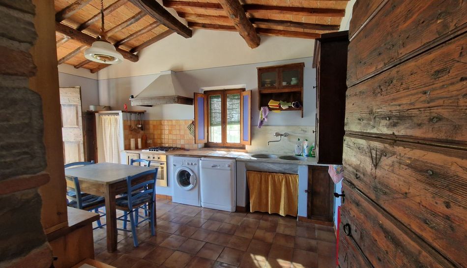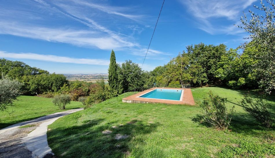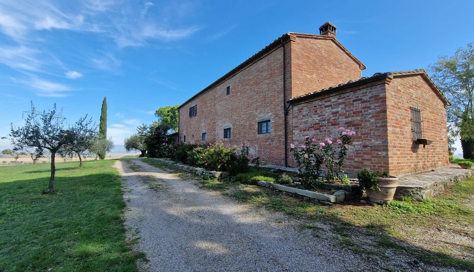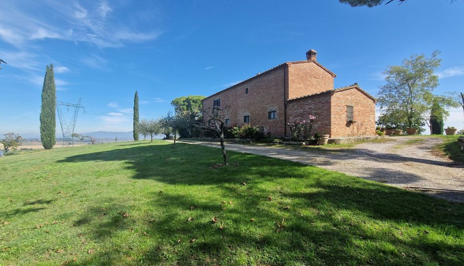 Cortona: In flat, landscaped position with far reaching views over the surrounding fields, lies this gorgeous, brickwork country house for sale.The main house is for sale with one storehouse and a private pool in beautiful position. The total surface is of about 500 sqm plus one ha of property land.The rooms of the country house are cosy, bright and enriched with rustic style furniture. The floors are in cotto, the ceilings have visible wooden beams and walls have been painted with soft pasted colors. The estate provides an own well.Because it is located in a very convenient position and many of the main touristic and artistic centers of this region are easily reachable, this beautiful country house might be converted in a B&B or given for rent during the summer/ spring period.