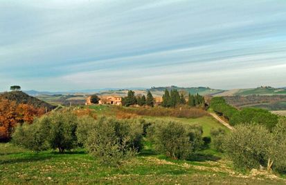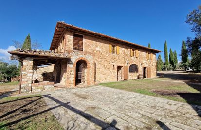 Country house with panoramic views, garden, park and three annexes for sale in Asciano, Tuscany. (Toscana / Asciano)