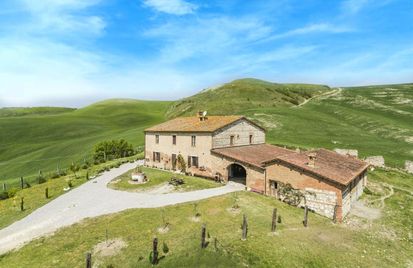 Property with restored farmhouse divided into 3 flats, annexes and 1.5 ha land for sale in the Crete Senesi, Tuscany. (Toscana / Asciano)