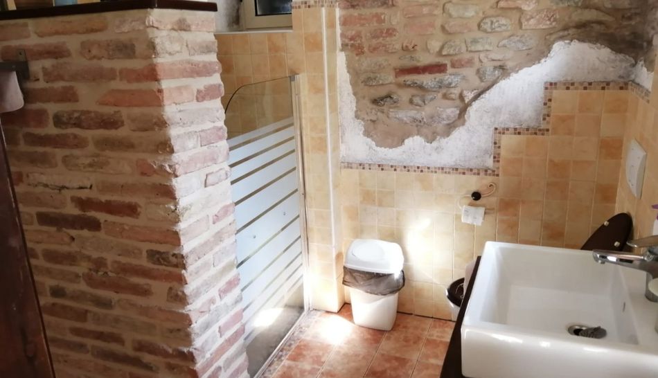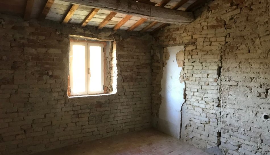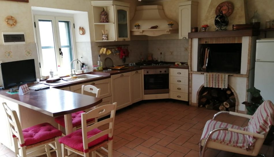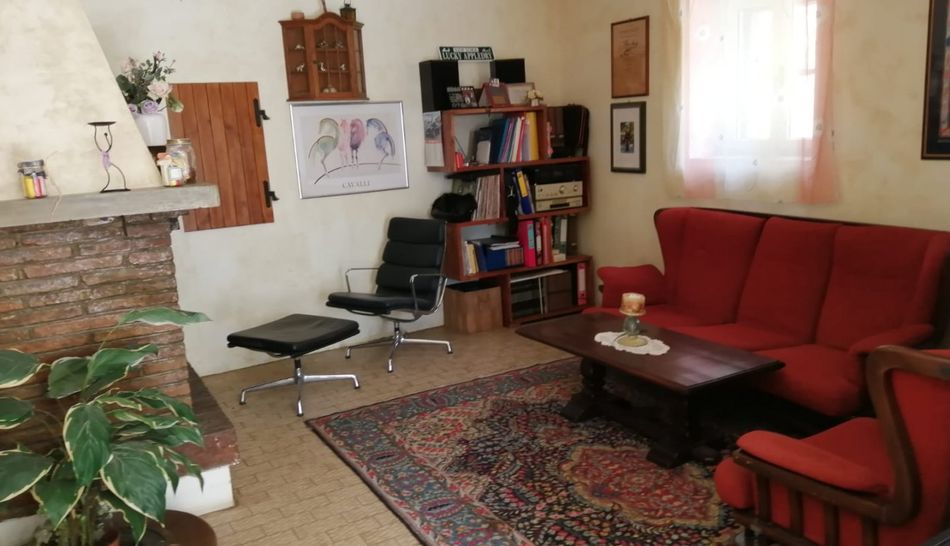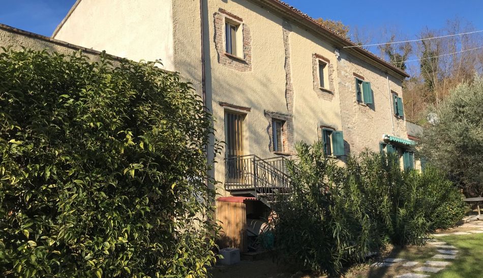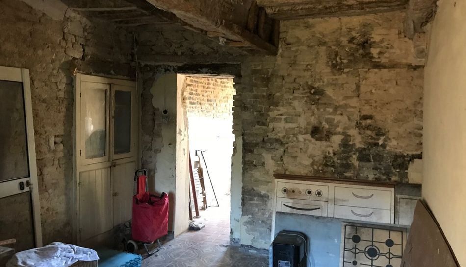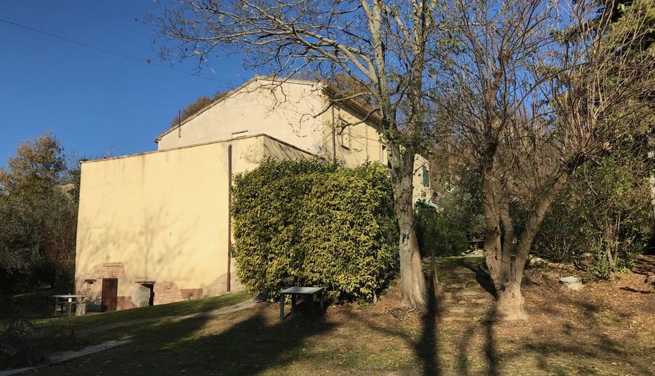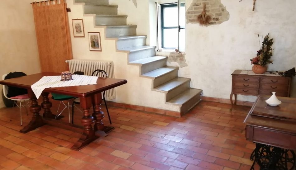 Country house located a short distance from the village of Montefelcino, The house is easily accessible and has a beautiful panoramic location. The property is surrounded by approximately 2000 sqm of garden, the house itself consists of a habitable part and a part that needs to be restored. The currently habitable part consists of: 2 large rooms and two small storage rooms on the lower floor. On the ground floor there is a kitchen, living room, room with fireplace, bedroom and bathroom. On the first floor two rooms, bathroom and terrace .. In the remaining part there are 3 large basements / storage rooms and a garage on the lower floor. 4 rooms on the ground floor and 4 on the first floor. The heating, with LPG tank, is connected and only works in the occupied area. water and electricity are available