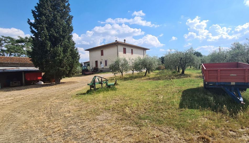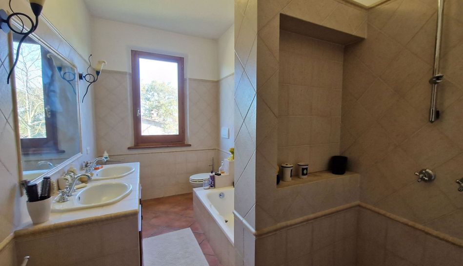 The property is completed by 5000 sqm of land with garden and olive grove with approximately 95 trees, on which there are also two annexes used as storage for agricultural machinery with a total area of 146 sqm.